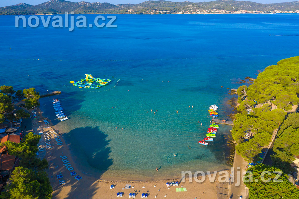 Krásná písčitooblázková pláž Soline se spoustou vodních atrakcí, barů a restaurací je od Hotelu Adria vzdálená 400 m.