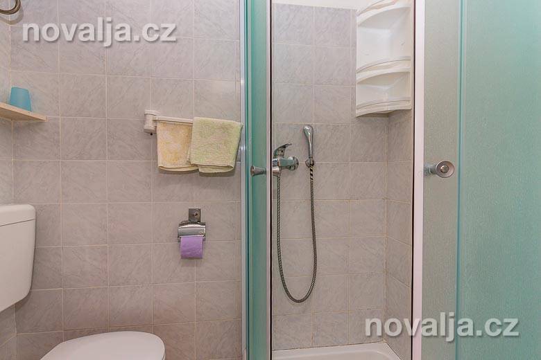 1 ložnice se dvěma lůžky, vybavená kuchyň (lednička, mrazák, trouba, myčka + tablety do myčky, varná konvice, mikrovlnná trouba, toaster) s rozkládacím gaučem pro 1-2 osoby (buď 2 děti do 12 let, nebo jen 1 osoba starší 12 let), TV, sociální zařízení s malou vanou a WC, pračka, fén, terasa. Klimatizace v kuchyni (v ceně).
