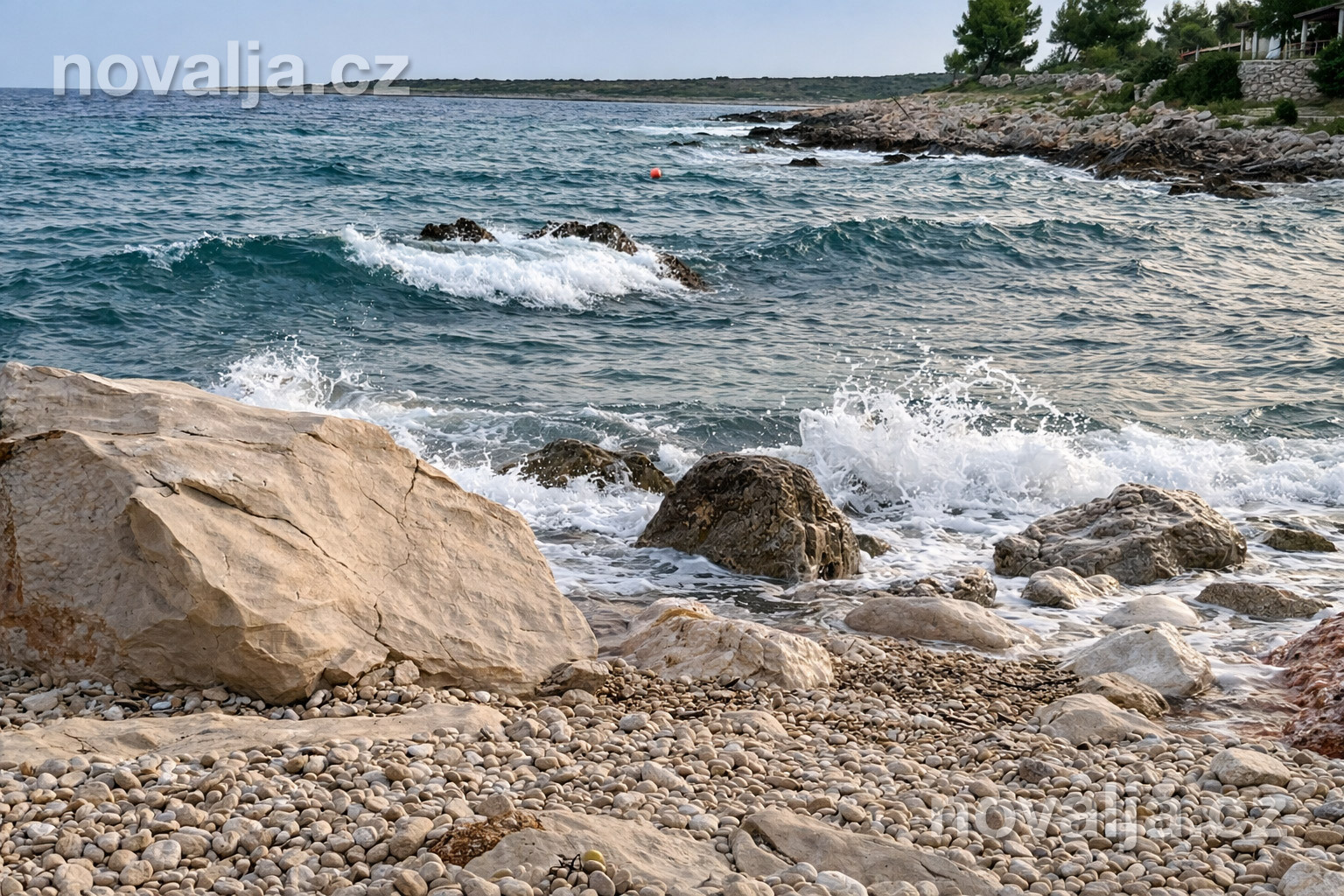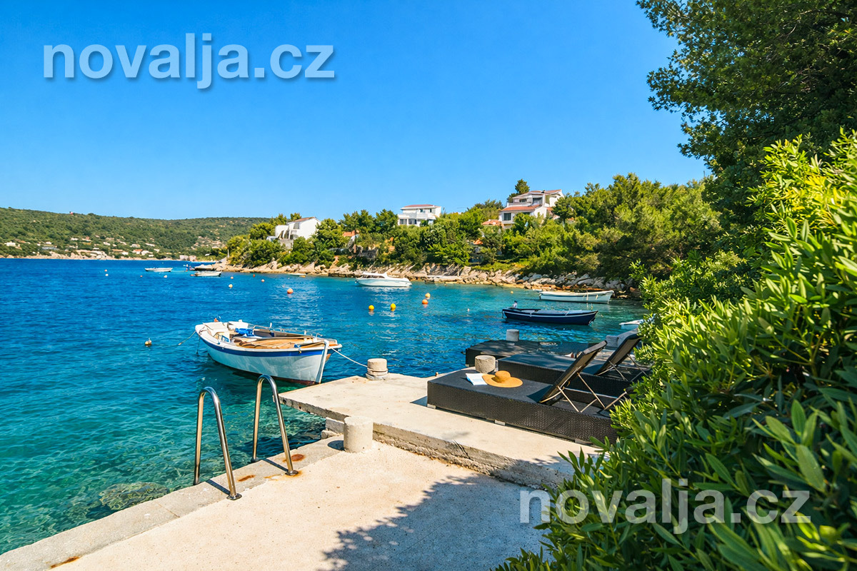 Pro snadný vstup do moře je pod domem vybudovaná betonová plošina a nerezové schůdky do moře. K dispozici jsou také 4 lehátka hned u moře (zdarma). Oblázková pláž Solinska je vzdálená 3,3 km od domu - je dostupná autem nebo na kole.