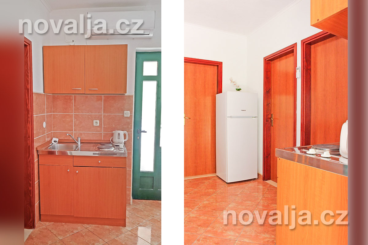 Studio (jedna místnost) se třemi lůžky, vybavený kuchyňský kout (lednička, varná konvice), sociální zařízení se sprchovým koutem a WC, terasa s bočním výhledem na moře (je však společná i pro apartmán A4). Klimatizace v ceně.