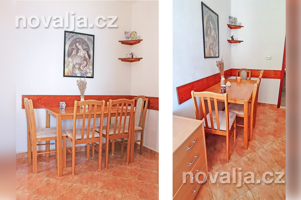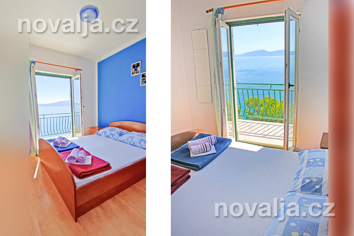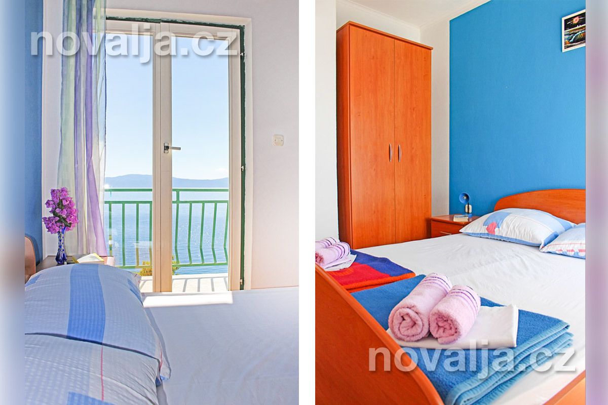2 ložnice se dvěma lůžky, menší vybavená kuchyň (lednička, varná konvice), sociální zařízení se sprchovým koutem a WC, balkón s výhledem na moře (vstup na balkón z obou ložnic), terasa u vstupu do apartmánu. Klimatizace v kuchyni v ceně.
