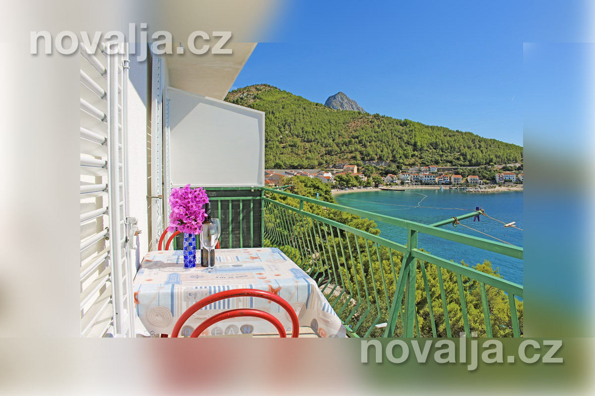2 ložnice se dvěma lůžky, menší vybavená kuchyň (lednička, mrazák, varná konvice), sociální zařízení se sprchovým koutem a WC, balkón s výhledem na moře (vstup na balkón z obou ložnic), terasa u vstupu do apartmánu s bočním výhledem na moře (společná se studiem S5). Klimatizace v kuchyni v ceně.