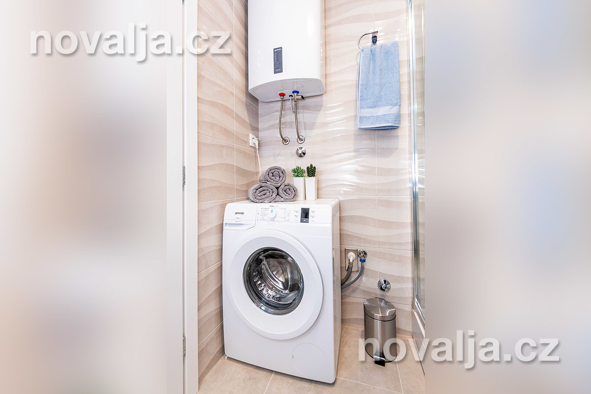 2 ložnice - jedna se třemi lůžky, druhá se dvěma lůžky, vybavená kuchyň (lednička, mrazák, trouba, myčka, mikrovlnná trouba, varná konvice), TV+SAT, sejf, sociální zařízení se sprchovým koutem a WC, pračka, fén, 2x terasa s výhledem na moře. Klimatizace v kuchyni a v obou ložnicích (v ceně).