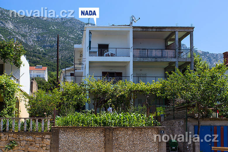 Apartmány Nada se nacházejí 150 m od oblázkové pláže, na okraji Gradacu. Dům je vhodný pro nudisty - pěkná oblázková FKK pláž lemovaná borovicemi je 300 m od domu. Obchod a restaurace do 100 m od domu.