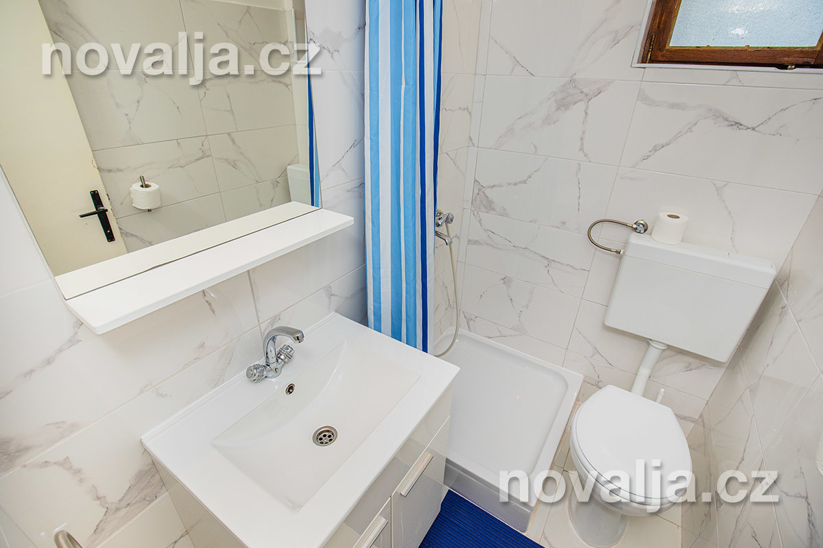 1 ložnice se dvěma lůžky, TV+SAT a terasou s výhledem na moře, vybavená kuchyň (lednička, varná konvice) se dvěma lůžky pro 2 osoby, sociální zařízení se sprchovým koutem a WC, stíněná terasa s dřevěným nábytkem a 1 lehátkem, s krásným výhledem na moře (vstup na terasu je z kuchyně). Klimatizace v kuchyni (v ceně).