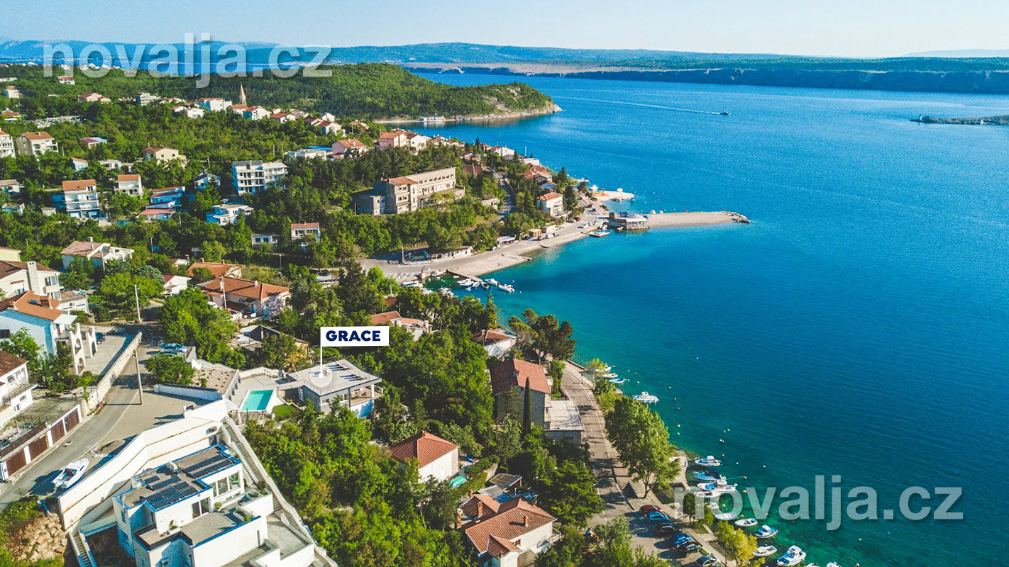 Prázdninový dům Grace s bazénem a krásným výhledem na moře se nachází 250 m od krásné oblázkové pláže Jadranovo s pozvolným vstupem ve stejnojmenném letovisku na Crikvenické riviéře. Můžete zde strávit skvělou dovolenou se skupinou přátel. Vila disponuje 5 ložnicemi a ubytuje 8–10 osob. Pejsci jsou zde také vítáni.