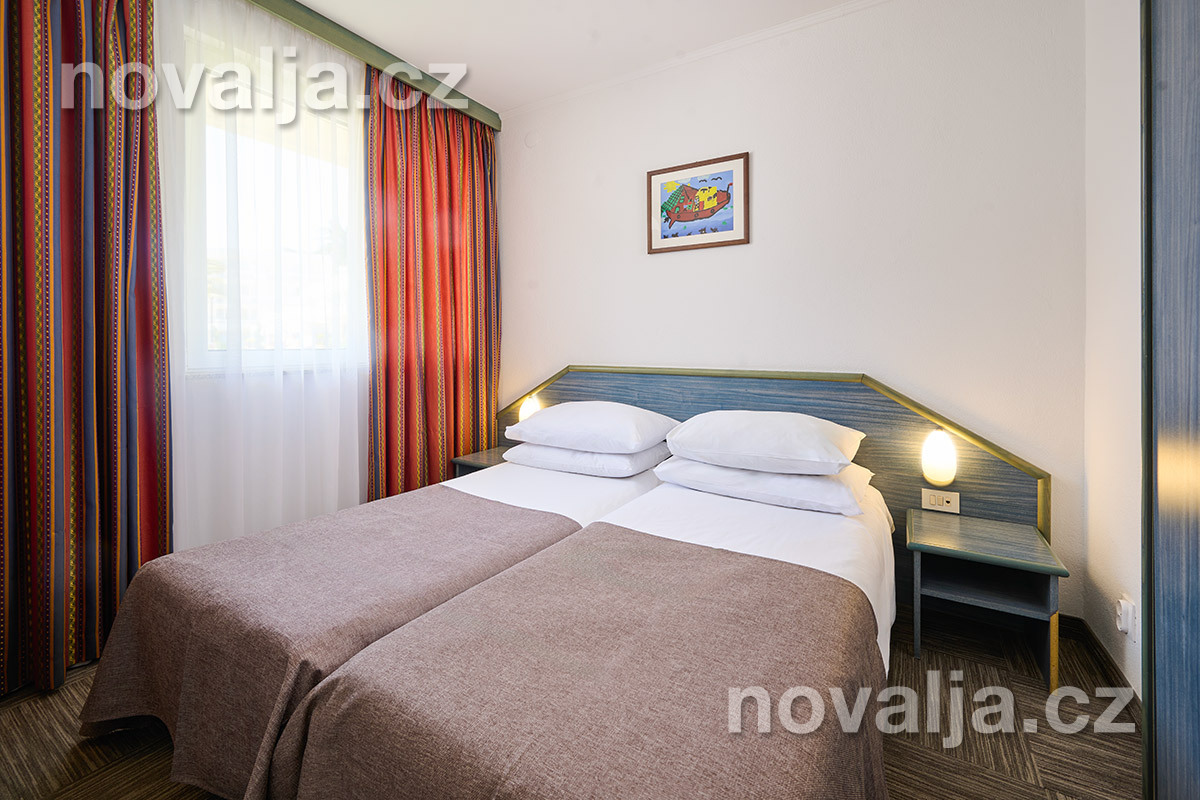 Dvě lůžka (manželské lůžko nebo dvě oddělená lůžka), možnost přistýlky (rozkládací lůžko) pro 1 dítě do 9,99 let, klimatizace (v ceně), TV, sociální zařízení se sprchovým koutem a wc, fén, bez balkónu.
