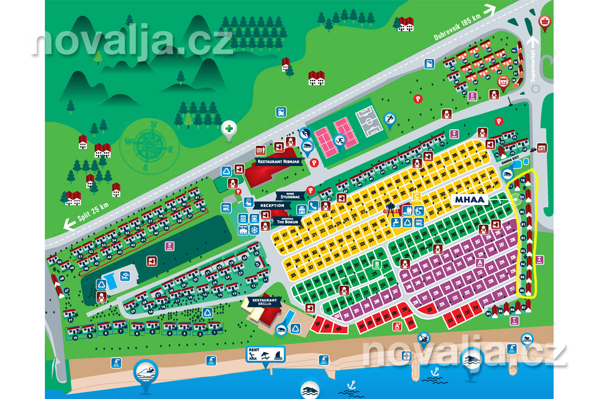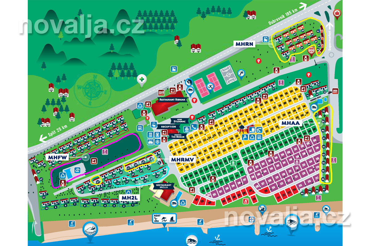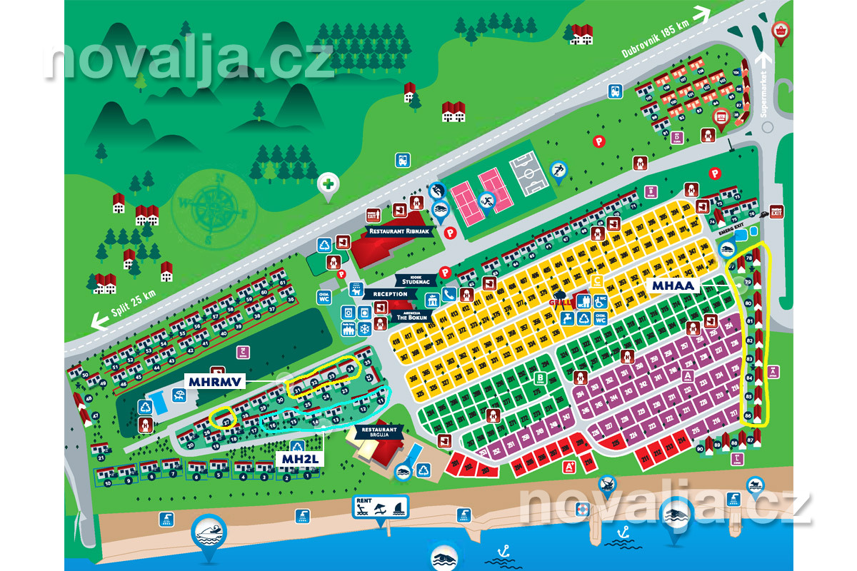 Mobilhomy MHAA jsou umístěny na jižním okraji resortu (20–120 m od pláže)
