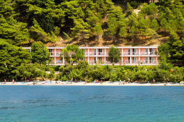 Hotel obklopený borovicovým hájem se nachází v jižní části města Omiš. Hezká oblázková pláž s pozvolným vstupem do moře je 30–100 m od hotelu (záleží na tom, v jaké části jste ubytovaní). Centrum Omiše s množstvím restaurací a obchůdků je vzdálené 1,4 km.