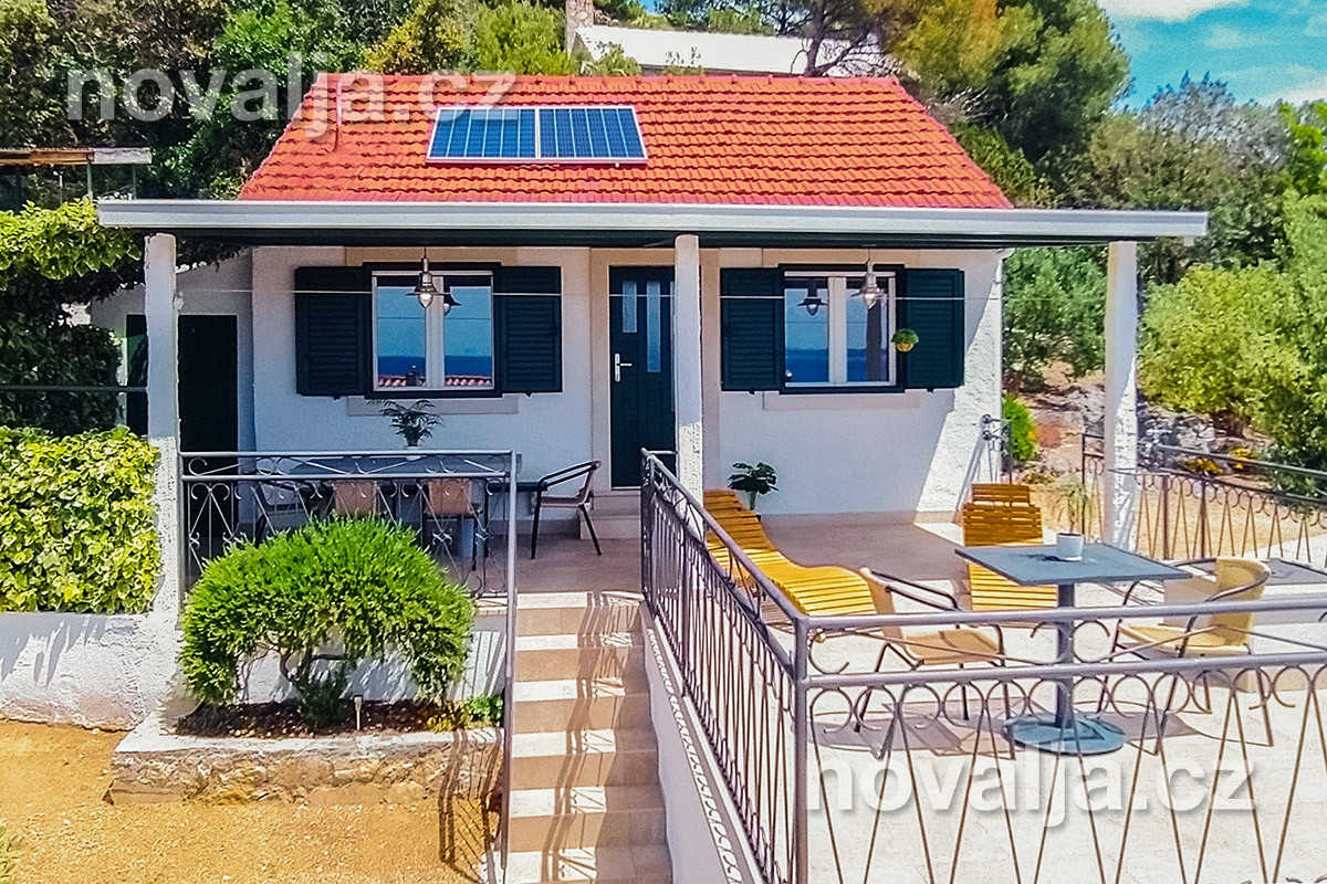 Výhodou domu je prostorná terasa s grilem a výhledem na moře. Ideální místo, kde si můžete ve stínu posedět s rodinou nebo přáteli. Nově je u domu také trampolína.