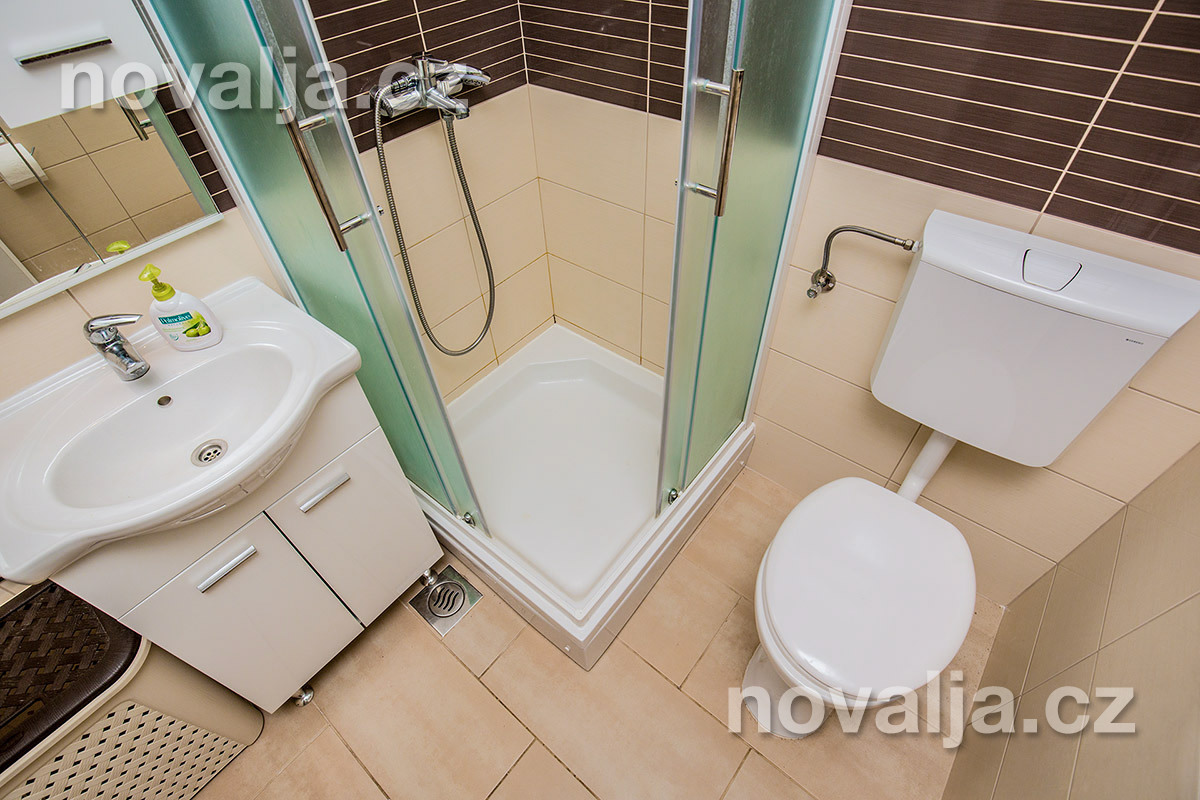 2 ložnice - každá se dvěma lůžky, vybavená kuchyň (lednička, mrazák, trouba, mikrovlnná trouba, varná konvice, kávovar), TV+SAT, sociální zařízení se sprchovým koutem a WC, fén, terasa. Klimatizace v kuchyni (v ceně).
