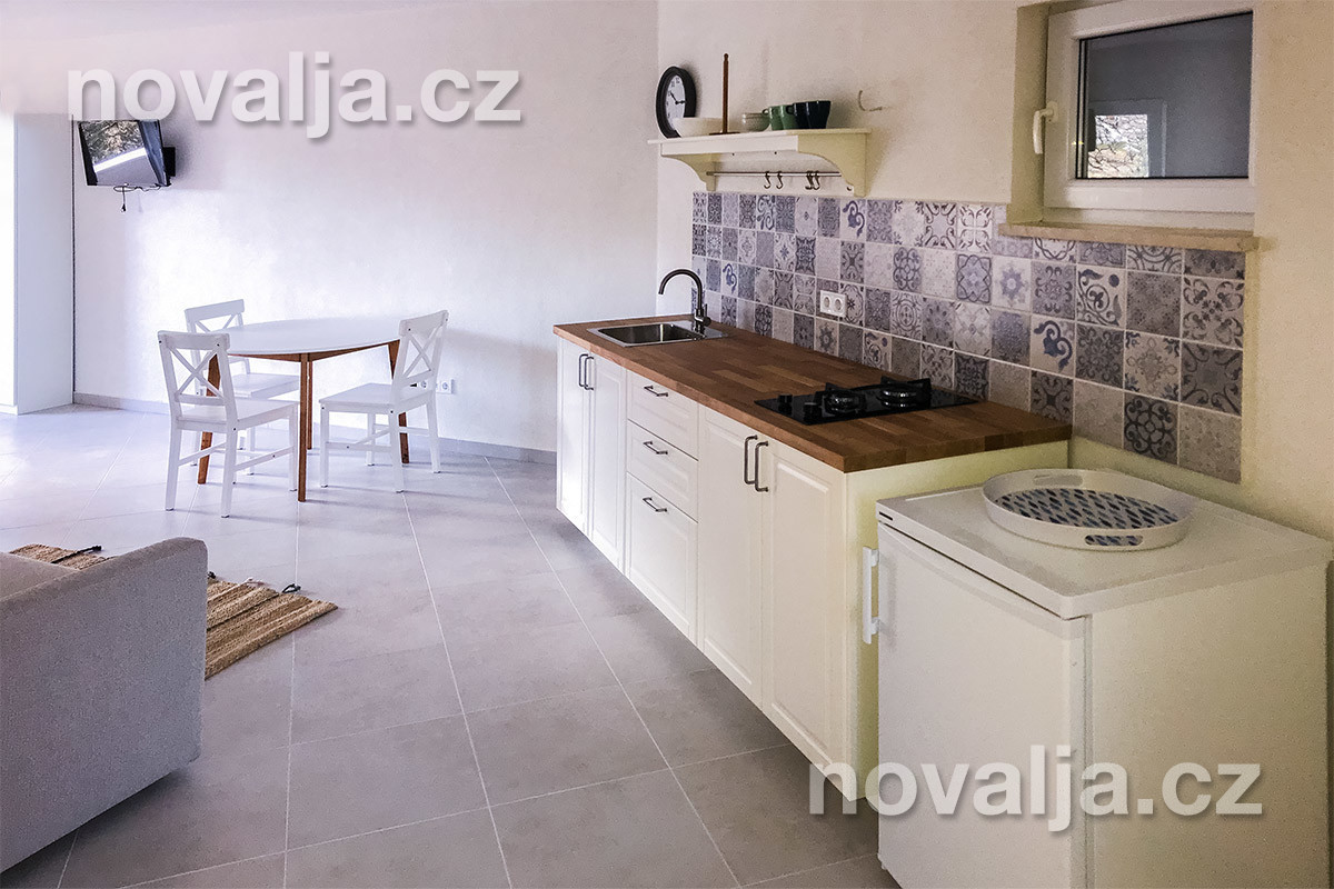 Apartmán má vlastní přístup k moři, kde je vybetonovaný plácek k ležení a k dispozici jsou i 2 plastová lehátka a slunečník.