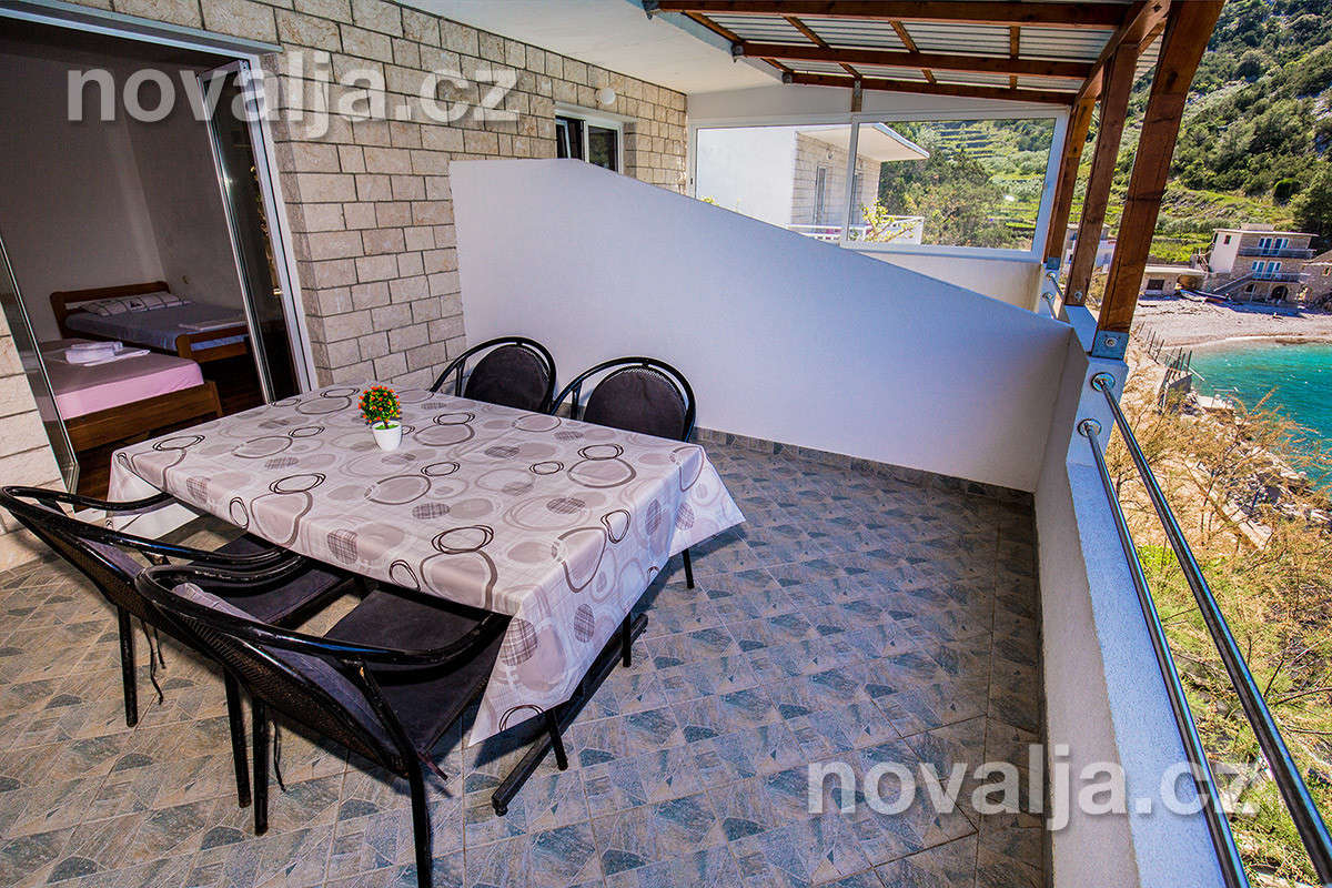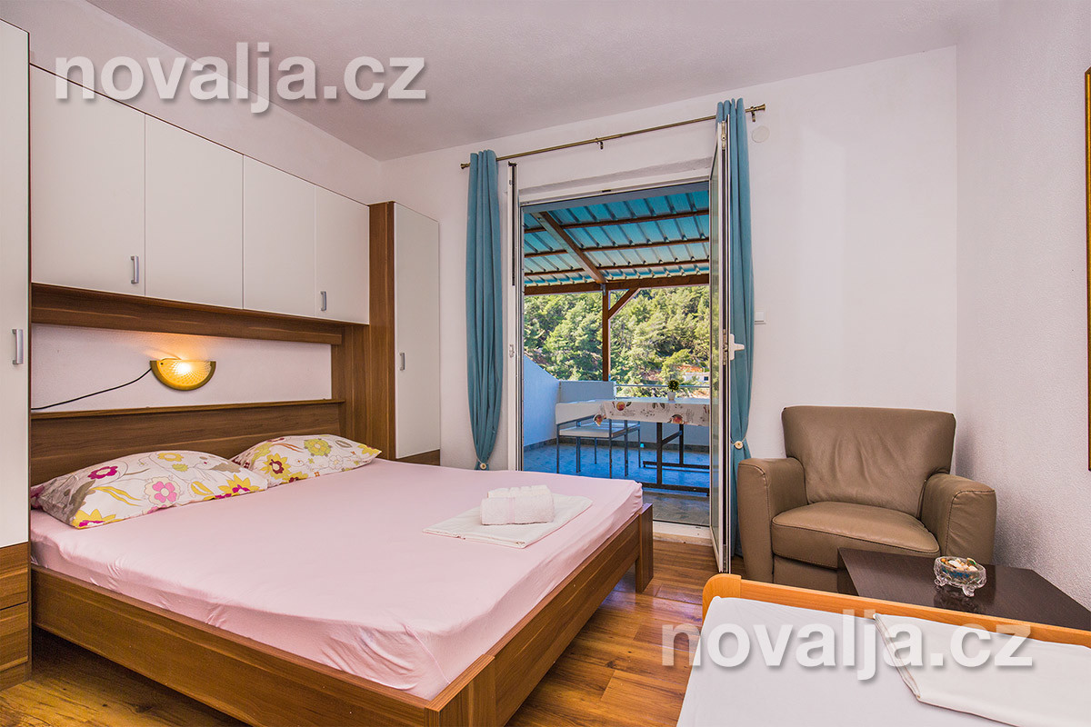 2 ložnice - jedna ložnice se dvěma lůžky, druhá ložnice se čtyřmi lůžky (z toho jsou dvě lůžka poschoďová), vybavená kuchyň (lednička, mrazák, trouba, mikrovlnná trouba, varná konvice), TV, sociální zařízení se sprchovým koutem a WC, 2x balkón s výhledem na moře, terasa. Klimatizace v kuchyni (za příplatek 5 €/den, platí se na místě).