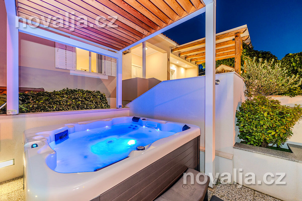 V domě se nacházejí dva apartmány s veškerým zázemím, které se pronajímají jako celý dům pro 6–8 osob. Kromě vířivky (2x2 m - pro 5 osob) mají před domem u moře také soukromé betonové molo se slunečníky a lehátky. Pro lepší přístup do moře jsou na mole schůdky.