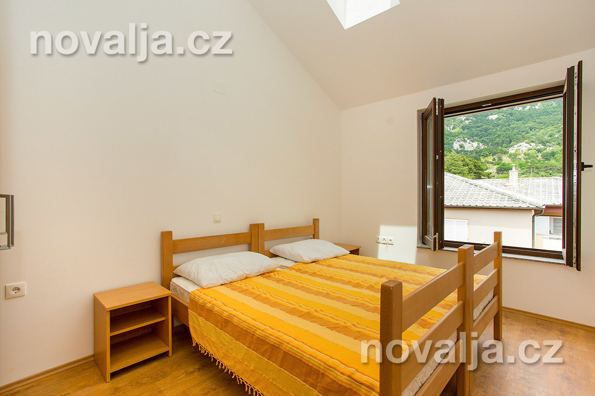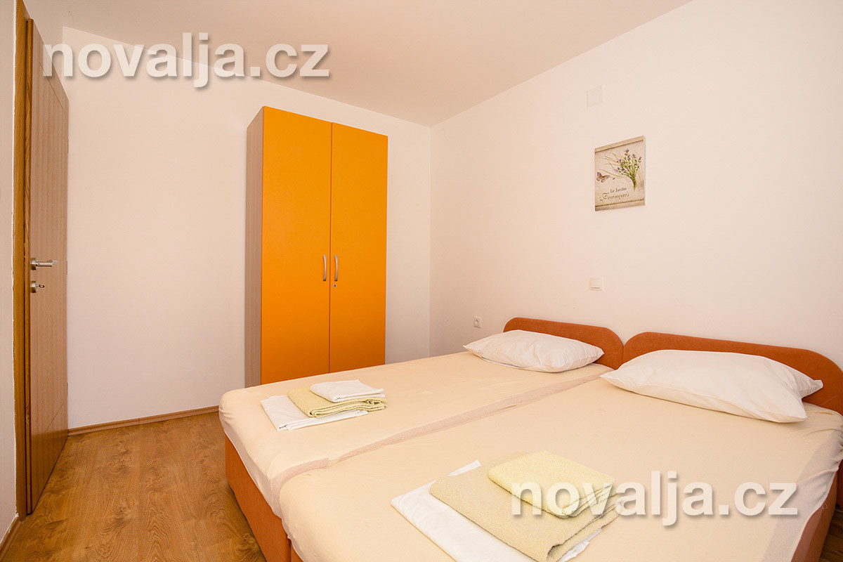 2 ložnice se dvěma lůžky, vybavená kuchyň (lednička, mrazák, trouba, mikrovlnná trouba, varná konvice, kávovar) s rozkládacím gaučem pro 1 osobu, TV+SAT, sociální zařízení se sprchovým koutem a WC, fén, sejf, terasa s částečným výhledem na moře. Klimatizace v kuchyni (v ceně). Rozloha 60 m².