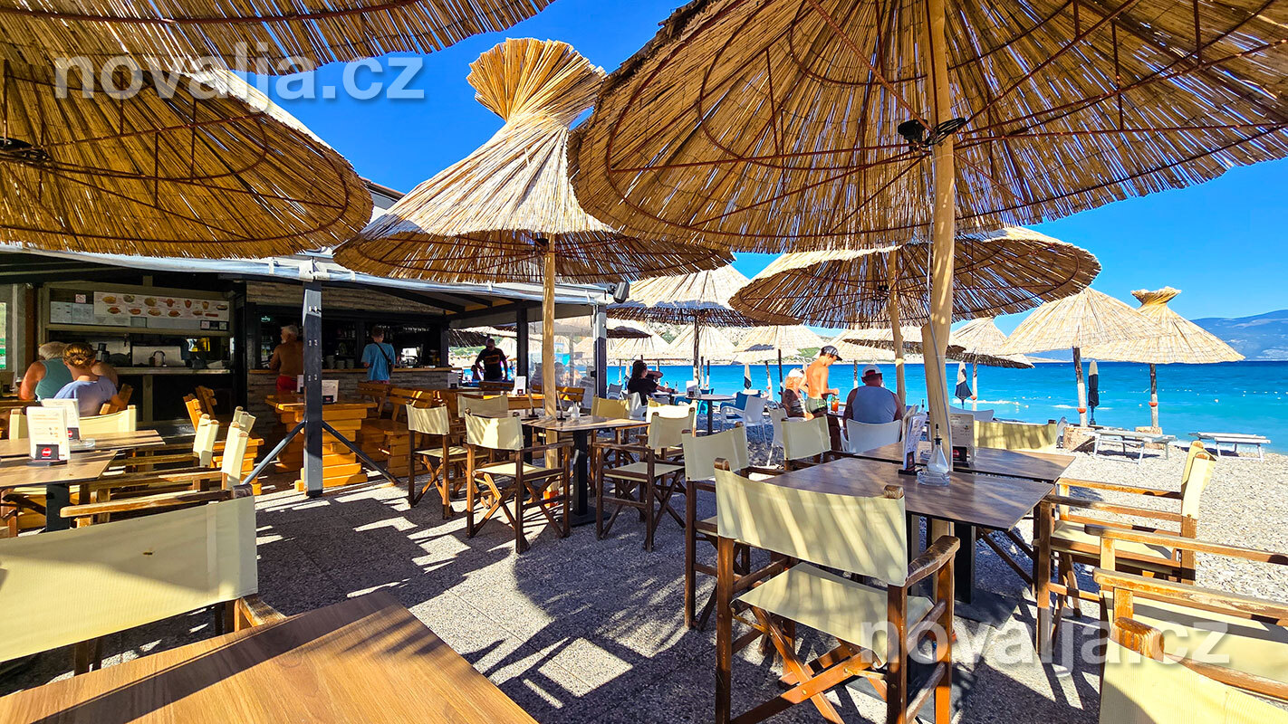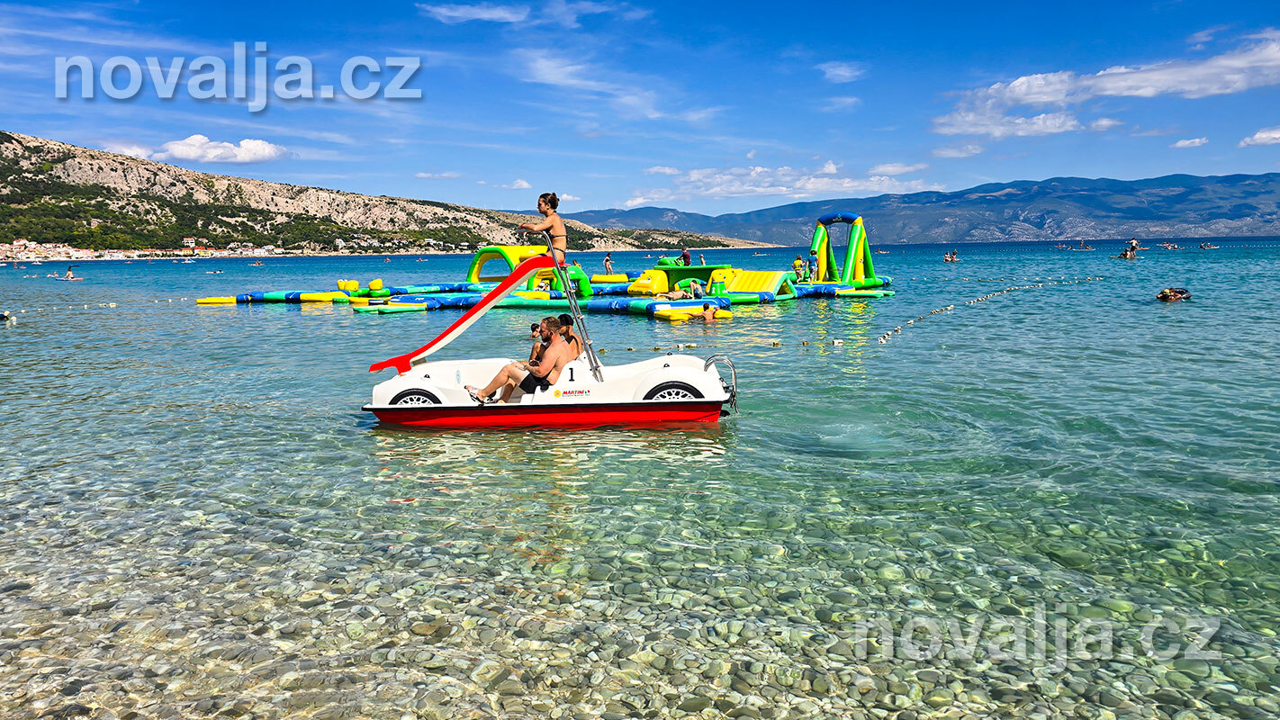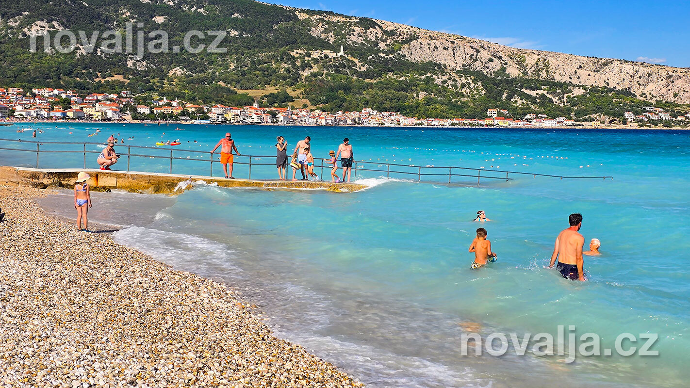 Apartmány Eva se nacházejí v klidné, okrajové části letoviska Baška. Krásná písčitooblázková pláž Vela s pozvolným vstupem do moře je 150 m od domu. U pláže jsou bary a restaurace. Nejbližší je bistro s rychlým občerstvením 200 m od domu a restaurace 270 m. Procházkou po pláži dojdete také k oblíbenému tobogánu (400 m od domu).