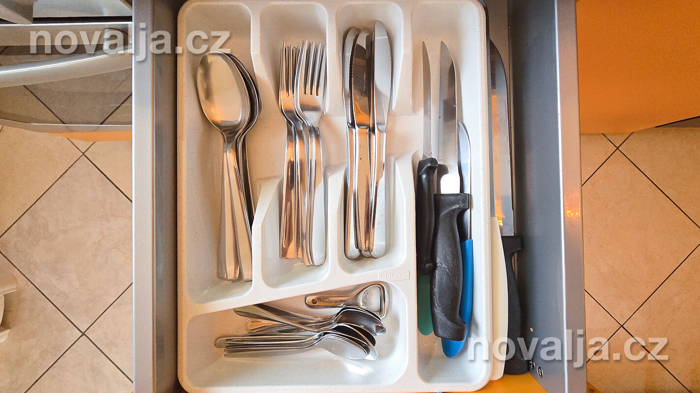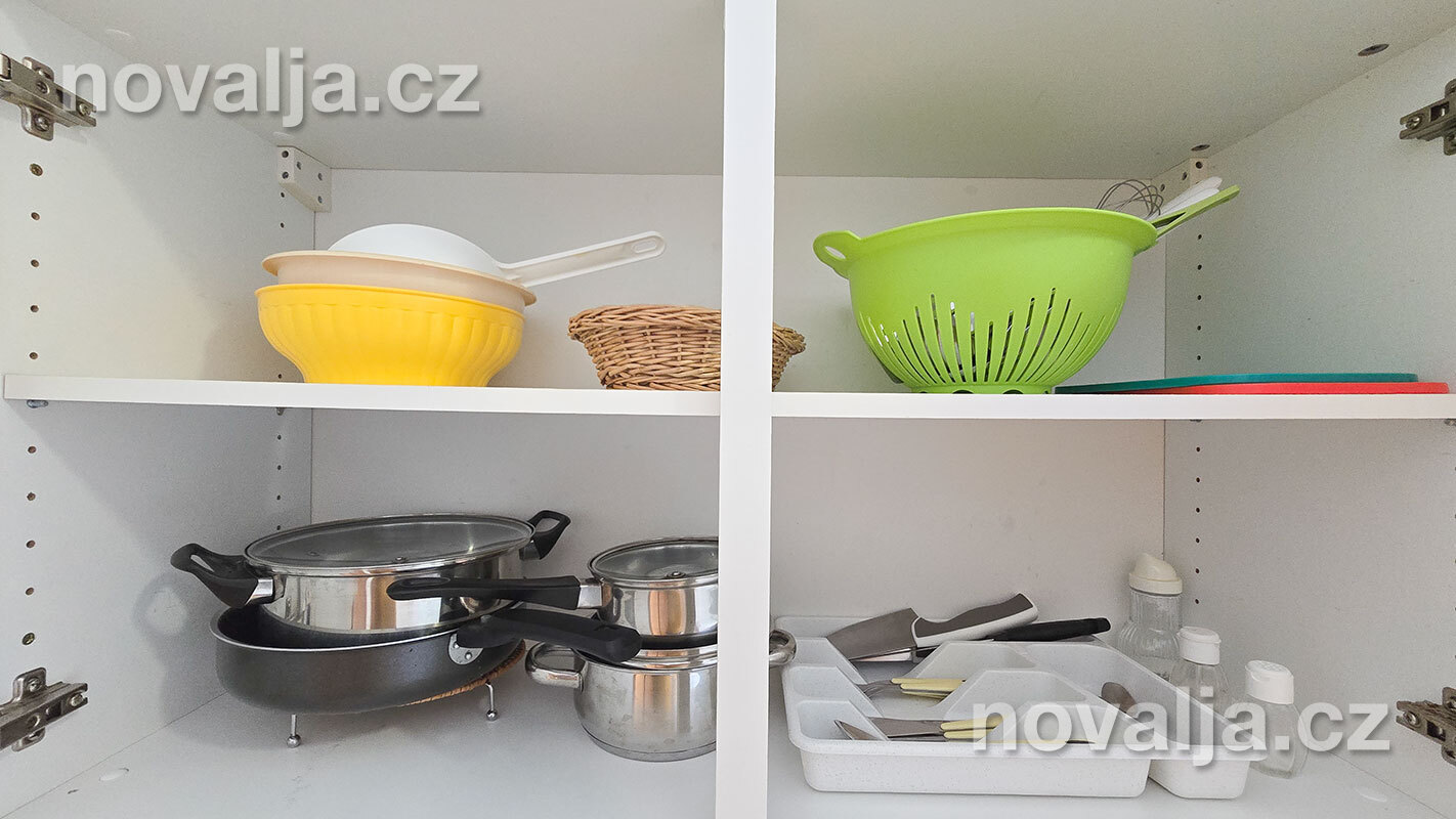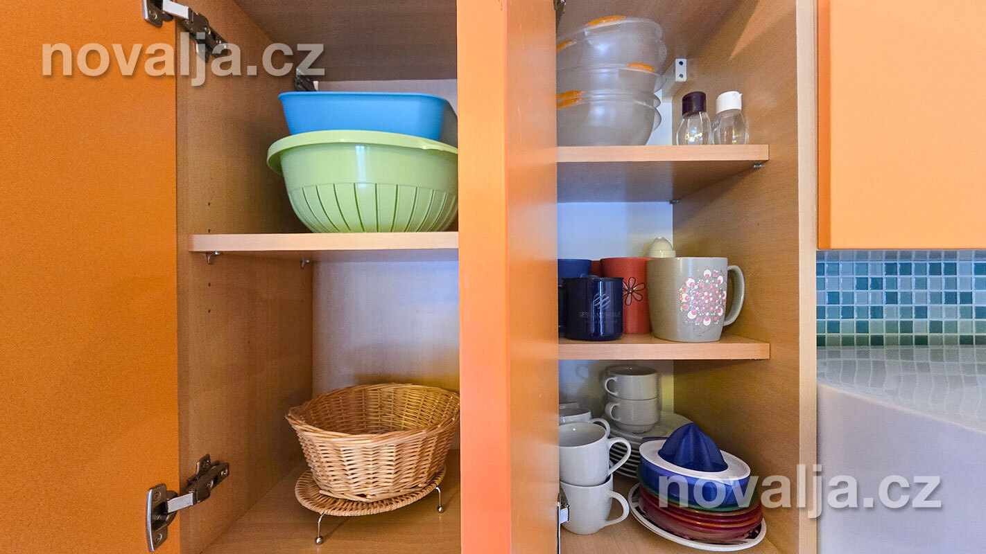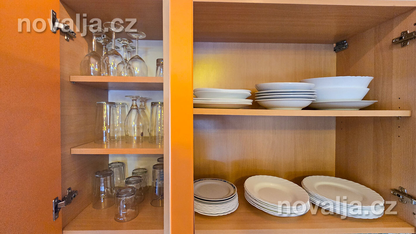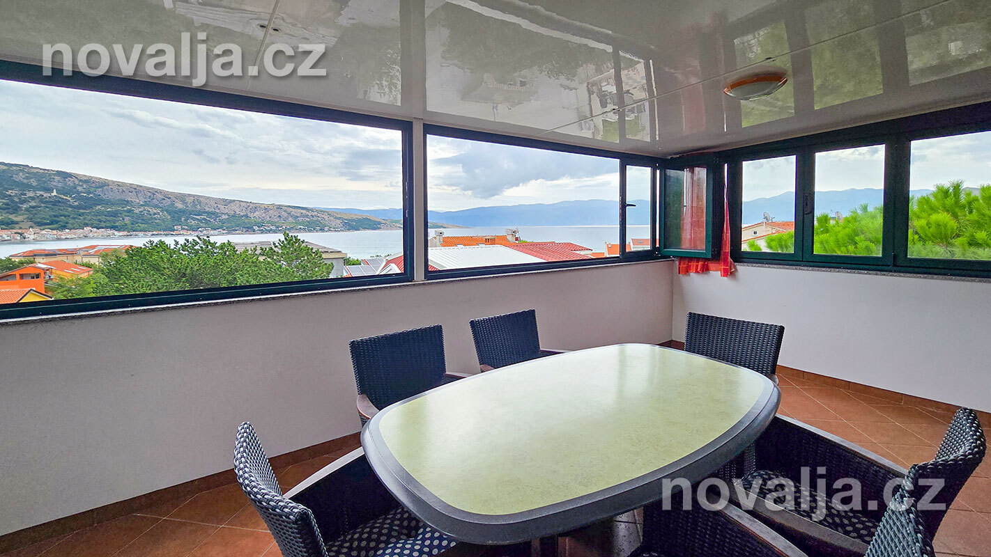 2 ložnice - jedna se dvěma lůžky, druhá s rozkládacím gaučem (200 x 140 cm) pro 1 osobu, vybavená kuchyň (lednička, mrazák, myčka, trouba, mikrovlnná trouba, varná konvice, kávovar, toaster) s rozkládacím gaučem (200 x 160 cm) pro 1–2 osoby, LCD TV+SAT, sociální zařízení s vanou a WC, pračka, fén, sejf, terasa s výhledem na moře. Klimatizace v kuchyni a v malé ložnici (v ceně).