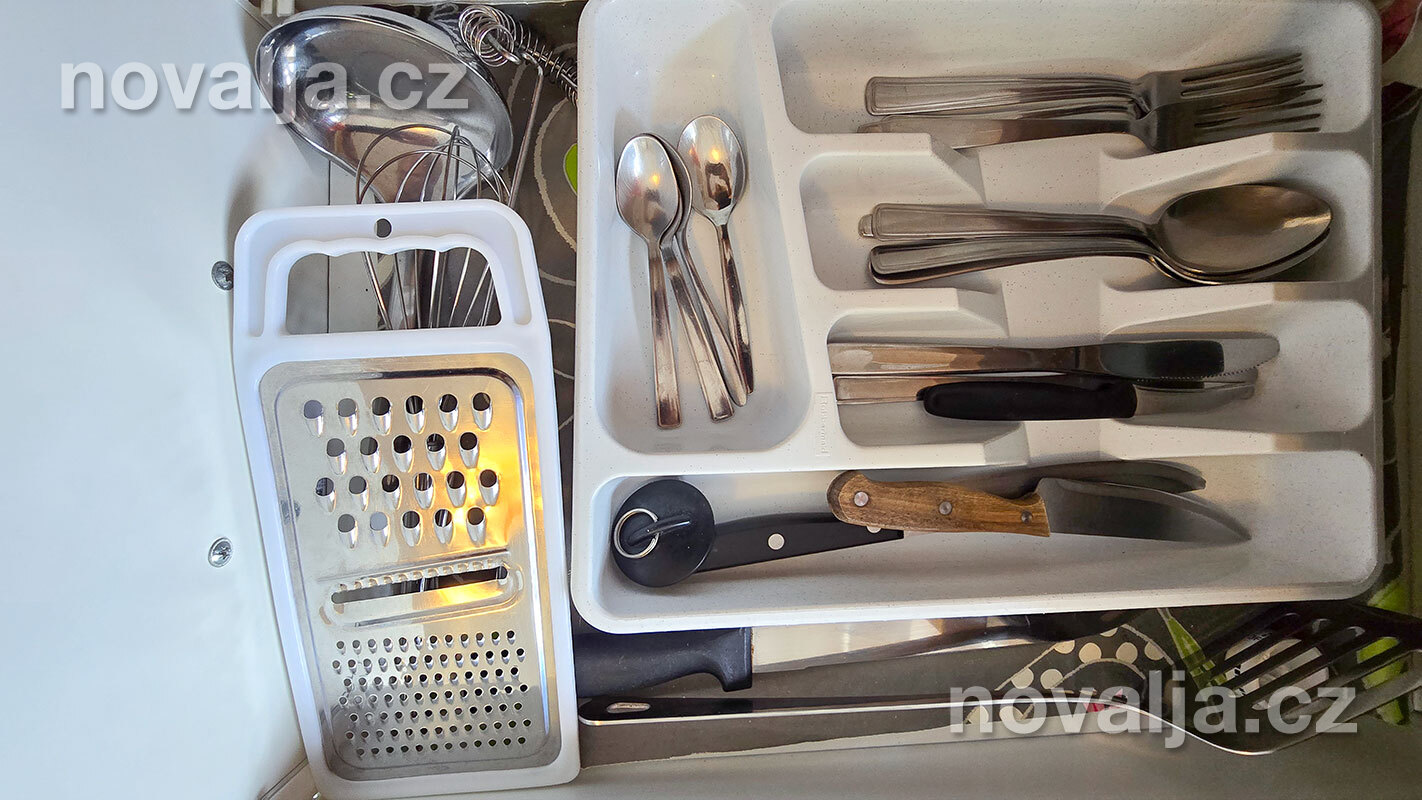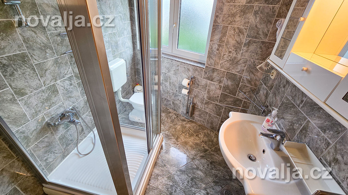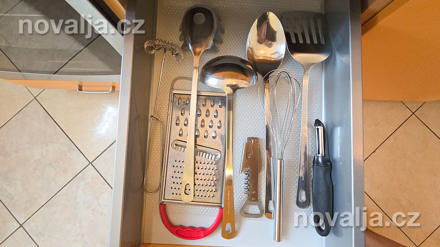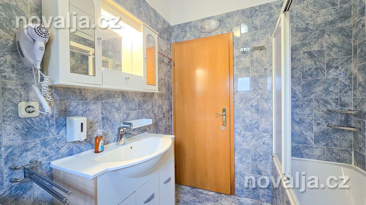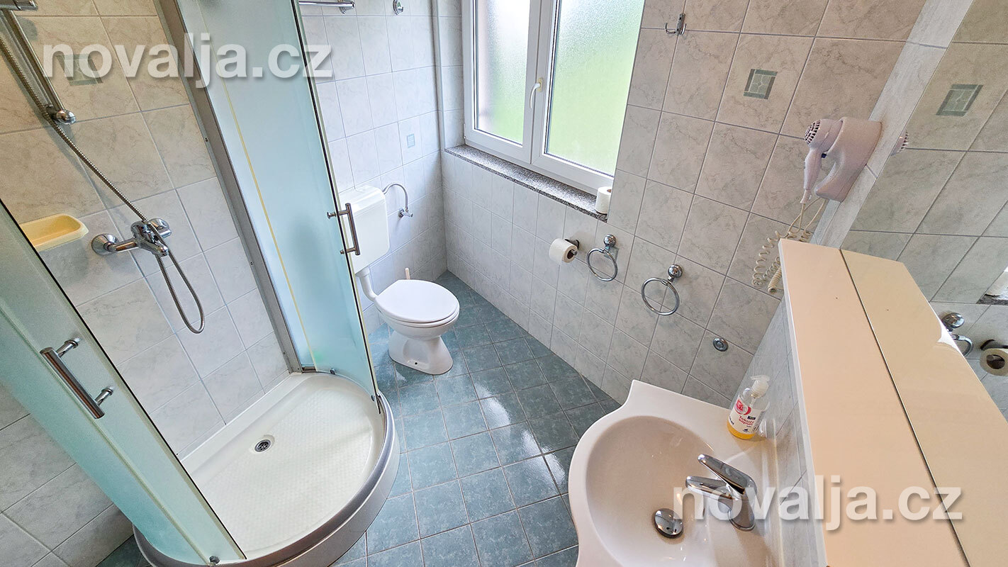 1 ložnice se dvěma lůžky, vybavená kuchyň (lednička, mrazák, trouba, mikrovlnná trouba, varná konvice, kávovar) s rozkládacím lůžkem (200 x 180 cm) pro 1–2 osoby (gauč na fotkách 3/10 a 5/10 není aktuální - foto bylo pořízeno před renovací), TV+SAT, sociální zařízení se sprchovým koutem a WC, fén, sejf, terasa (vně apartmánu). Klimatizace v kuchyni (v ceně).