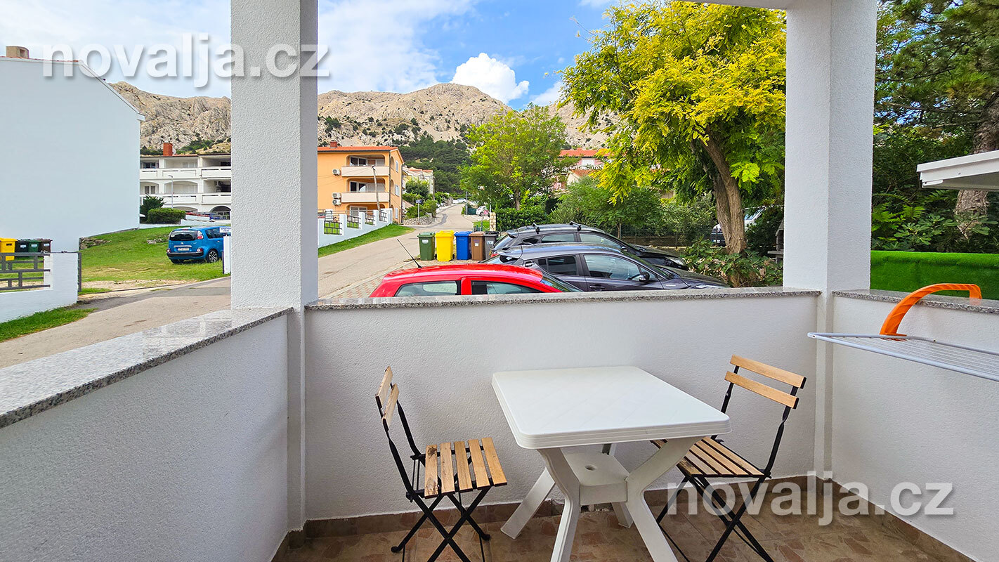 Studio A5 má terasu společnou s apartmánem A1 a má jen jedno okno směřující právě na tuto terasu (viz foto).