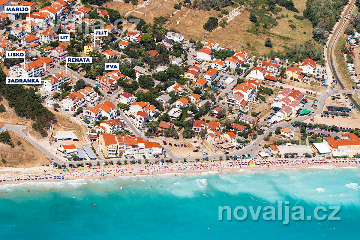 Nově postavený apartmánový dům se nachází v klidné, okrajové části letoviska Baška. Krásná písčitooblázková pláž je od domu 260 m.