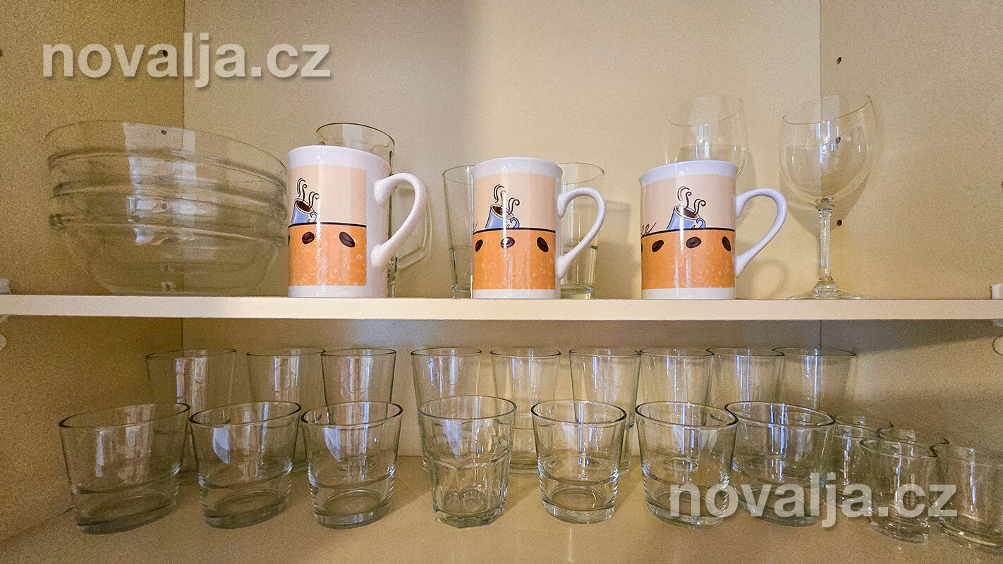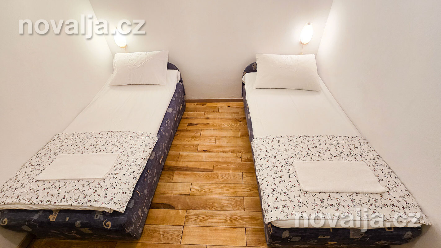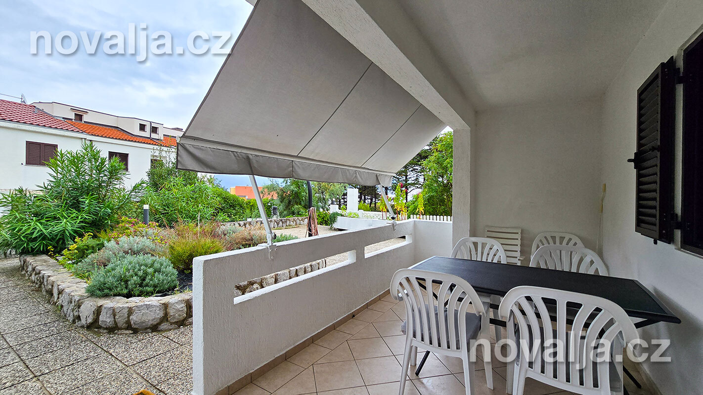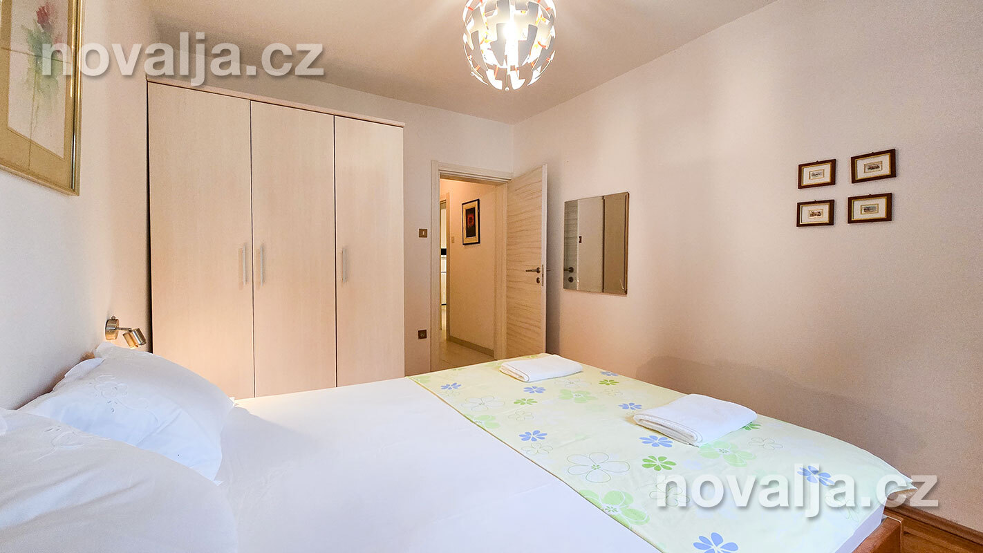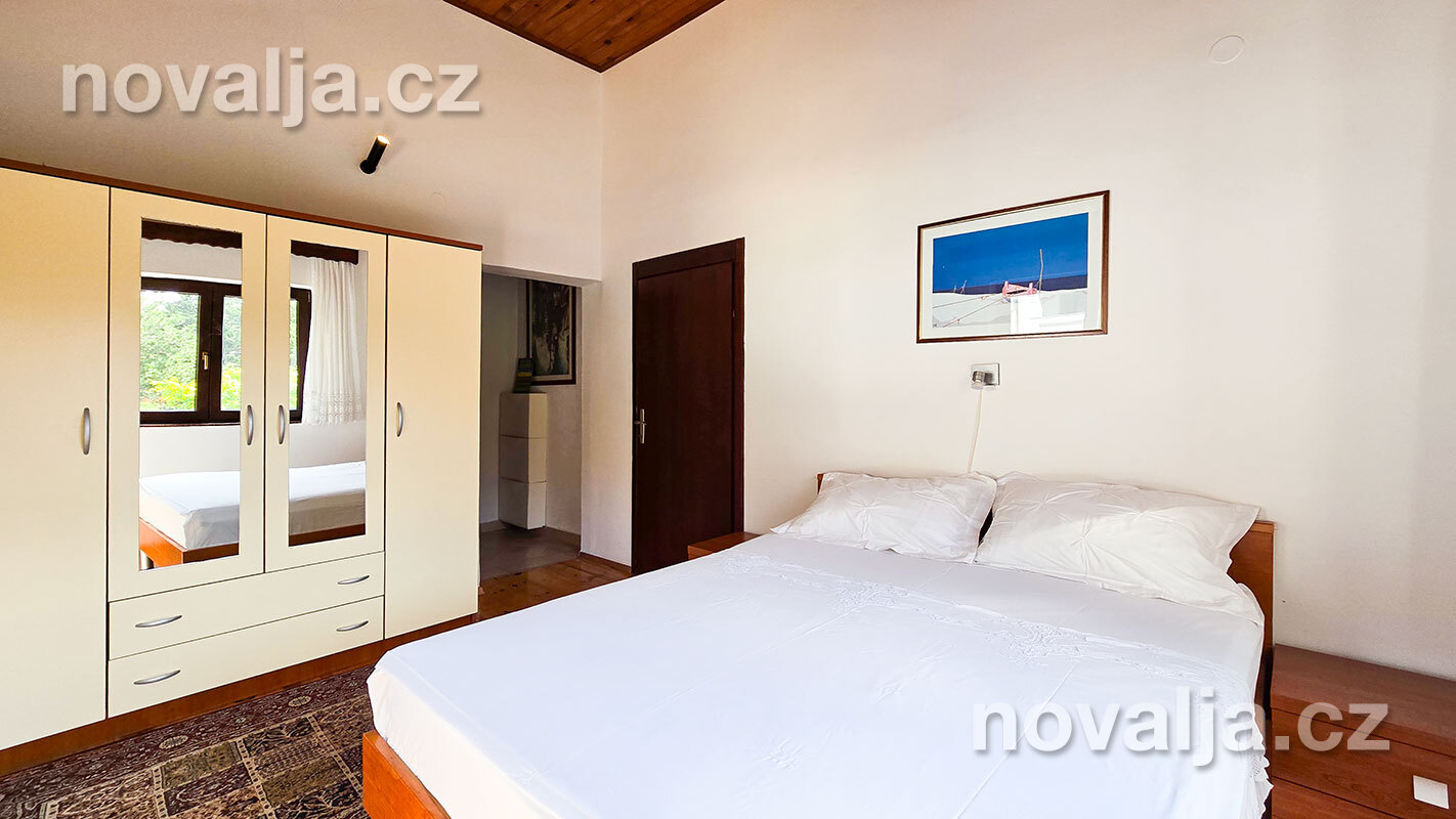 3 ložnice se dvěma lůžky (v jedné ložnici je jen jedno malé okno), vybavená kuchyň (lednička, mrazák, myčka, mikrovlnná trouba, varná konvice, kávovar) s rozkládacím gaučem pro 1 osobu, TV+SAT, 2x sociální zařízení - 1x se sprchovým koutem a WC, 1x s malou vanou a WC, fén, pračka, terasa, 2 lehátka. Klimatizace v kuchyni (v ceně).