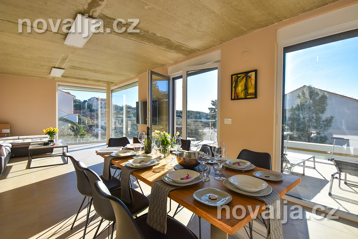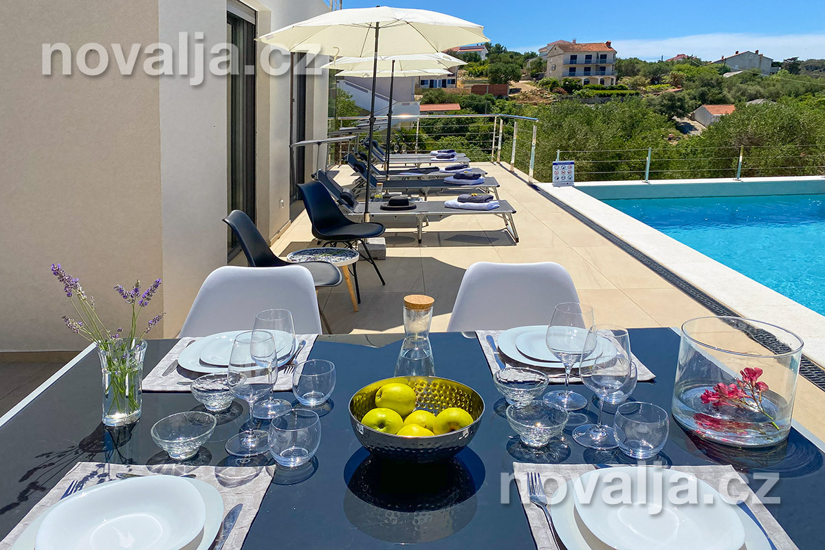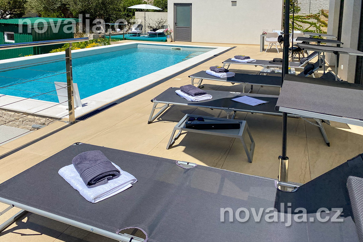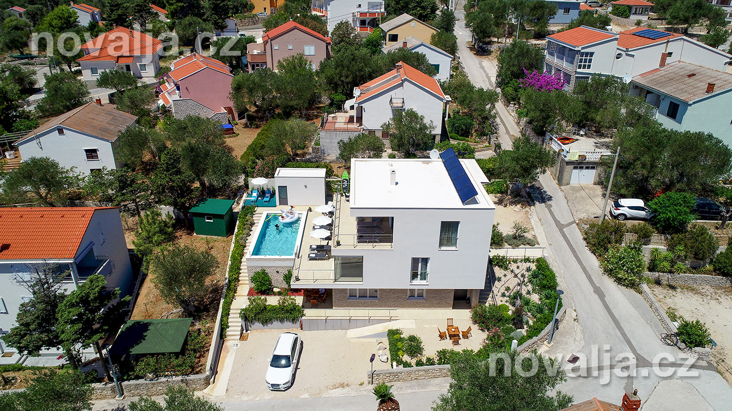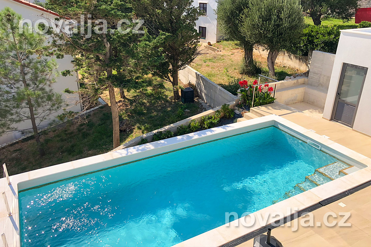 Vila vás zaujme hned na první pohled - je světlá, moderně zařízená, s krásným vyhřívaným bazénem a prostornými terasami s lehátky a výhledem na moře. K dispozici je zde také sauna a u bazénu letní kuchyně a gril. Krásná oblázková pláž se nachází jen 80 m od domu.