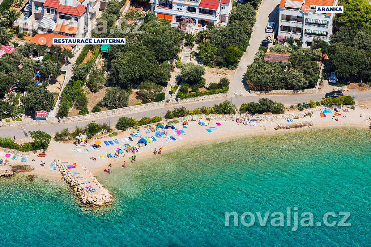 Apartmánový dům Aranka v letovisku Mandre má výjimečnou polohu - nachází se jen 40 m od pěkné oblázkové pláže s pozvolným vstupem do moře. Nejbližší restaurace je vzdálená 120 m, obchod 360 m.