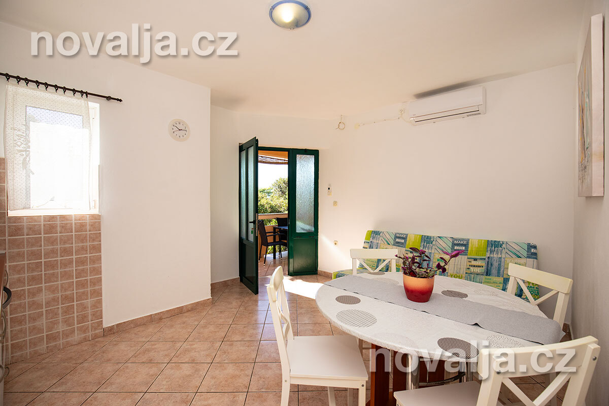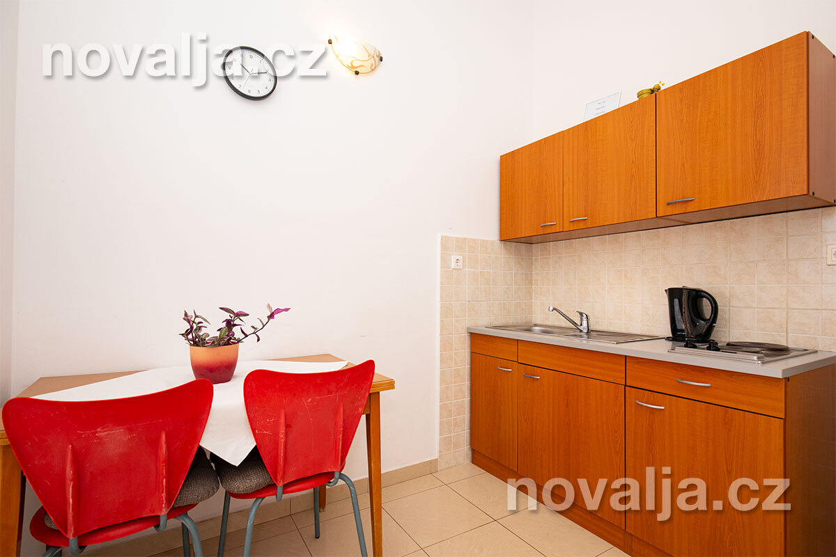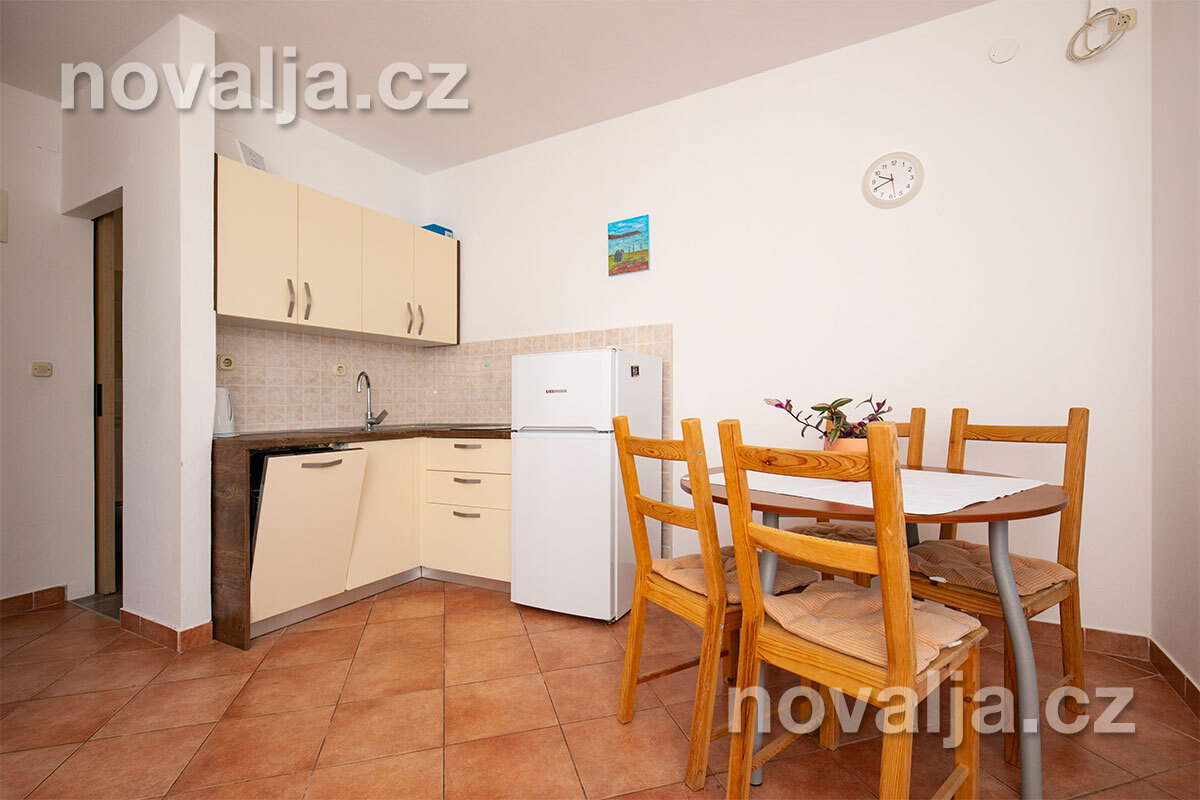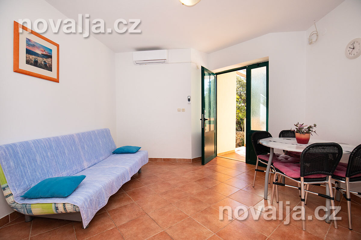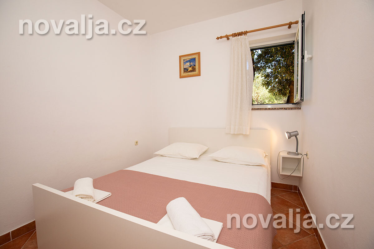1 ložnice se dvěma lůžky, vybavená kuchyň (lednička, mrazák, trouba, varná konvice) s dalším lůžkem a rozkládacím gaučem (200 x 164 cm) pro 1–2 osoby (buď 2 děti do 12 let, nebo jen 1 osoba starší 12 let), sociální zařízení se sprchovým koutem a WC, krytá terasa s výhledem na moře. Klimatizace v kuchyni (v ceně).