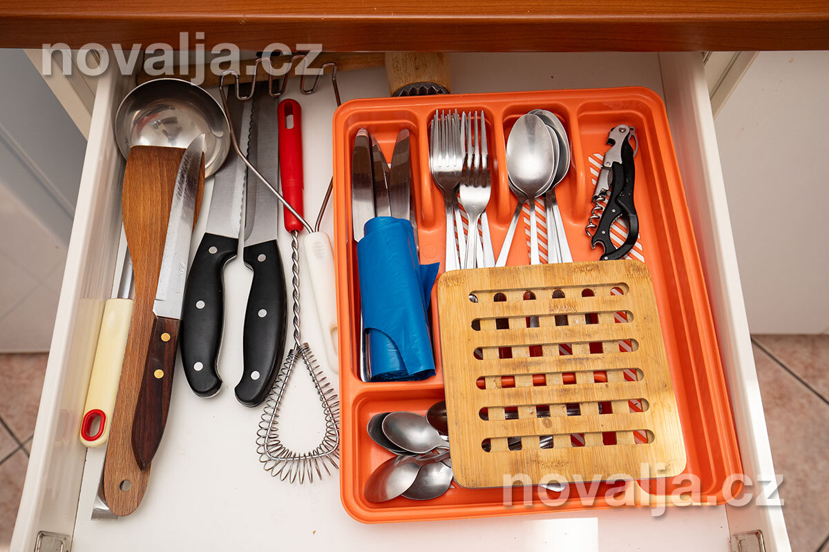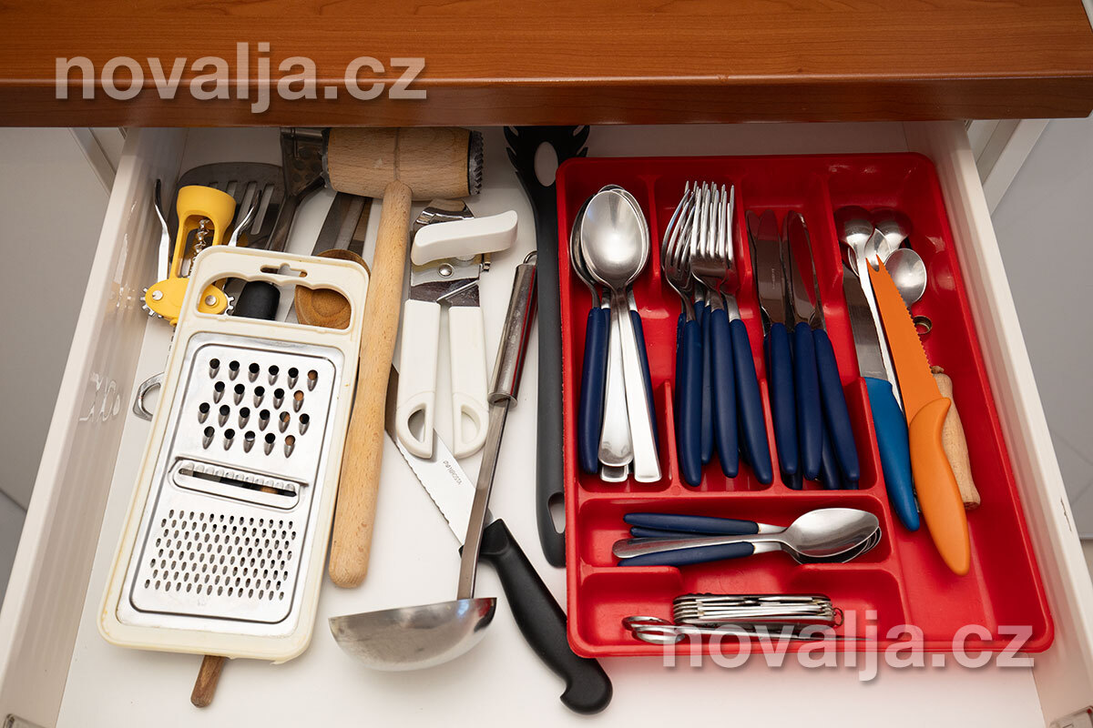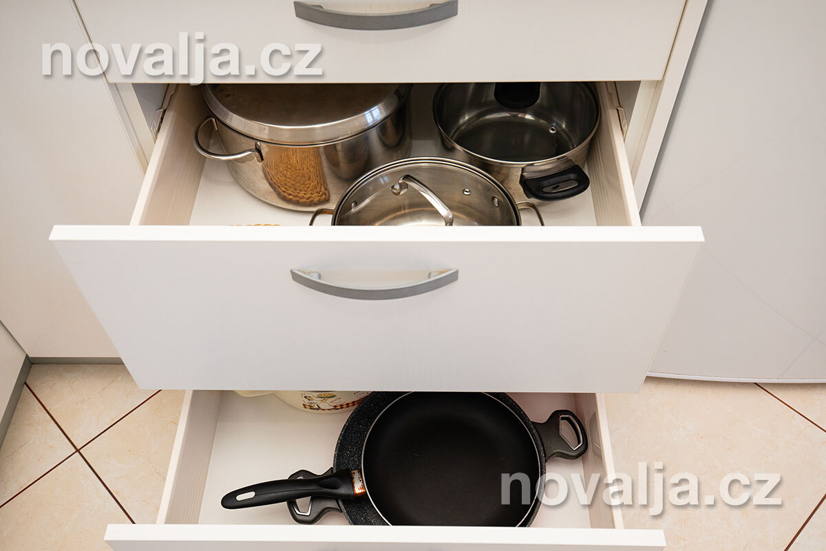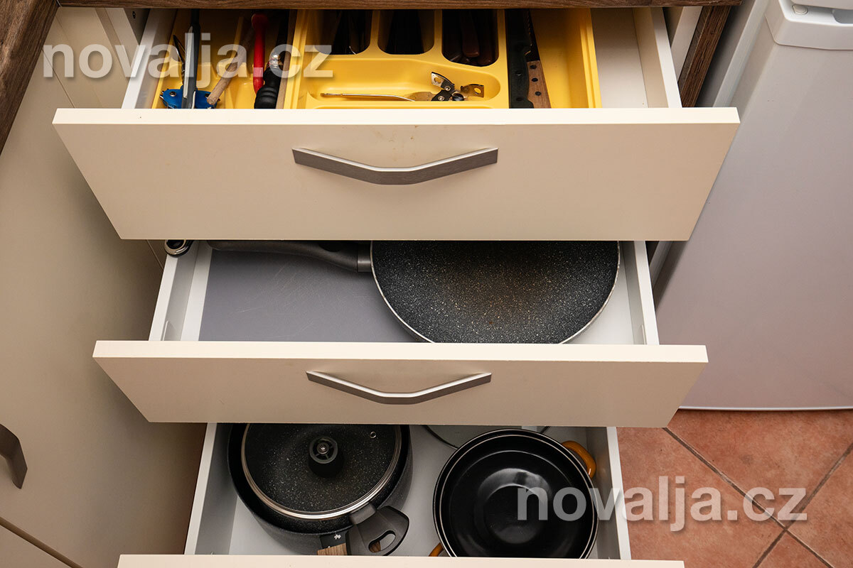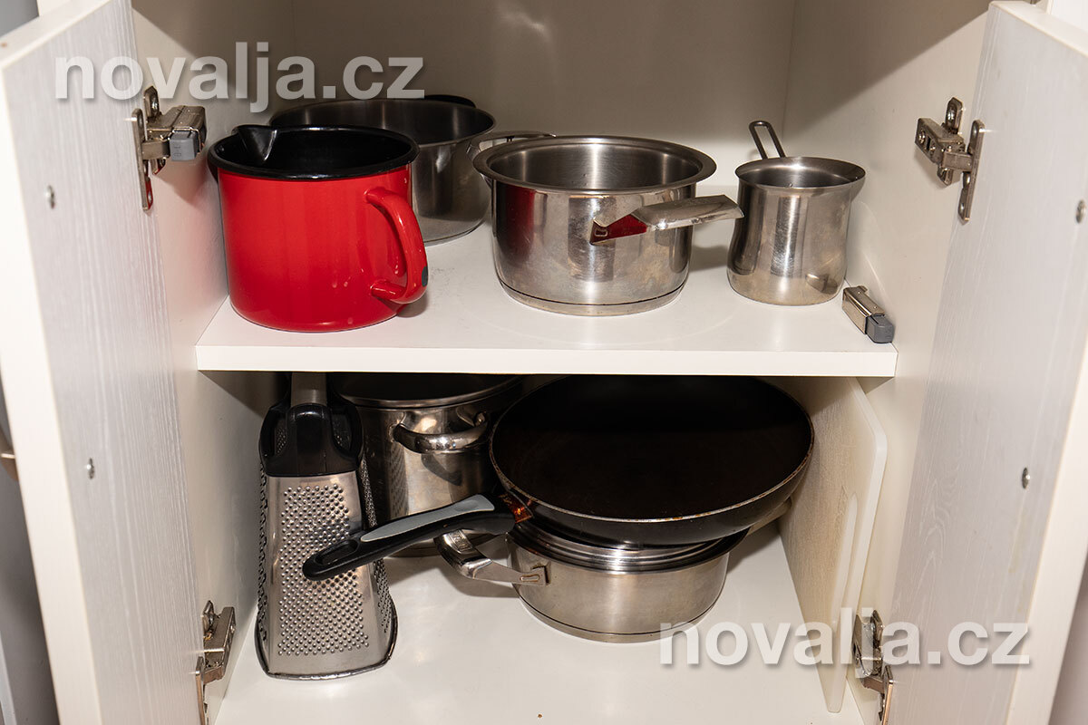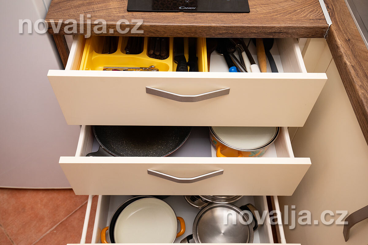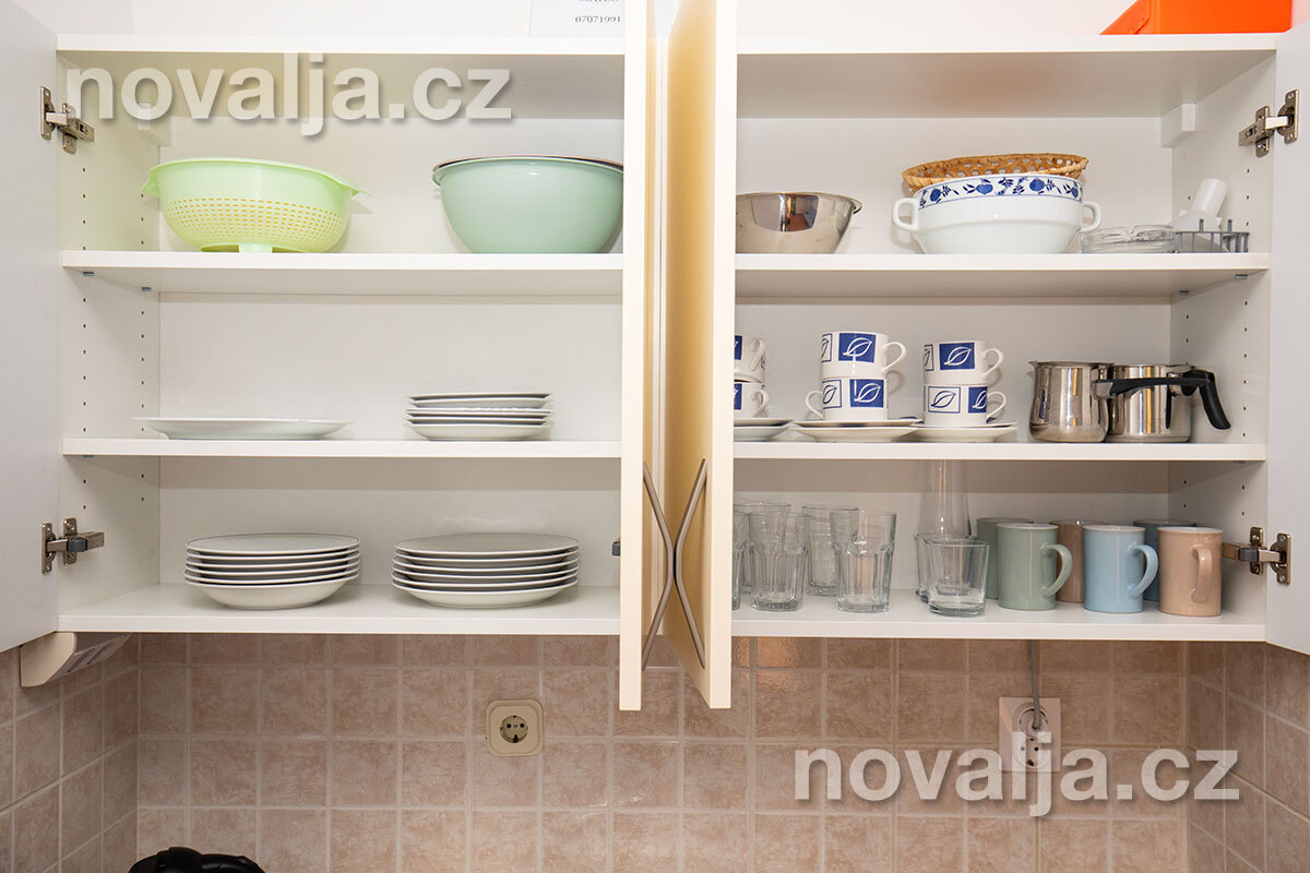 1 ložnice se dvěma lůžky, vybavená kuchyň (lednička, mrazák, myčka, varná konvice) s rozkládacím gaučem (190 x 125 cm) pro 1–2 osoby (buď 2 děti do 12 let, nebo jen 1 osoba starší 12 let), sociální zařízení se sprchovým koutem a WC, terasa. Klimatizace v kuchyni (v ceně).