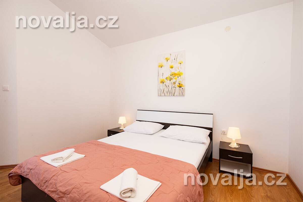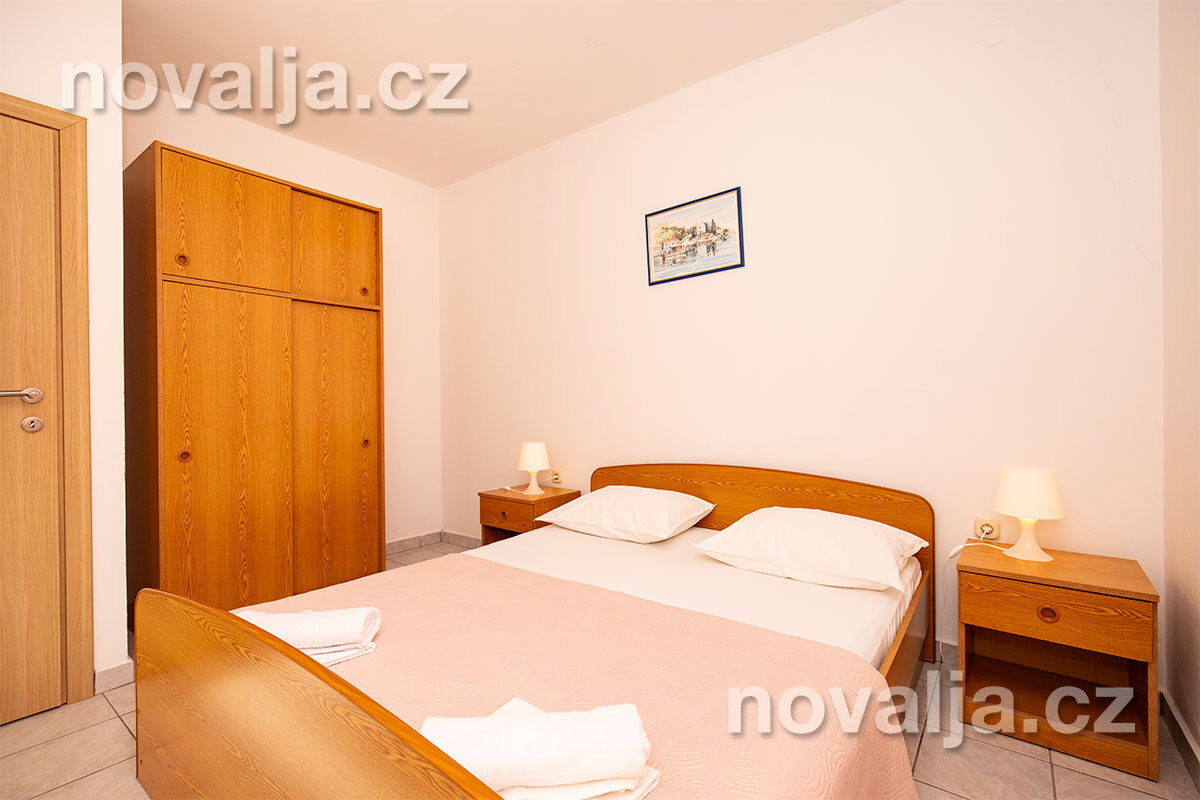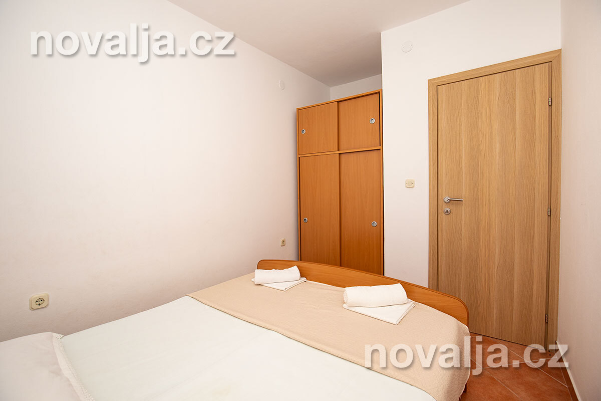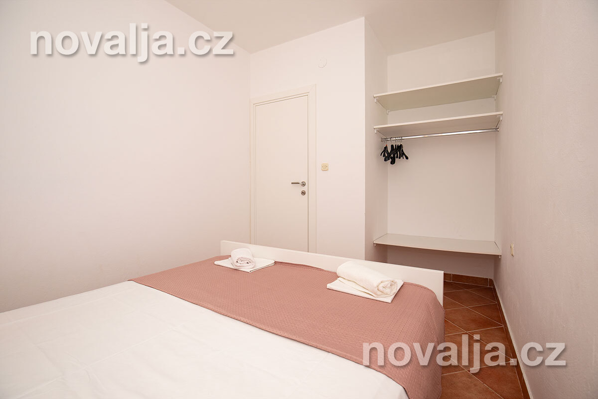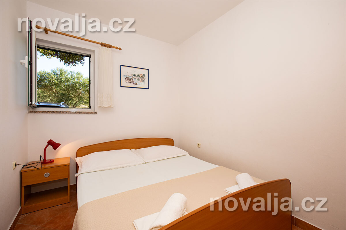 2 ložnice se dvěma lůžky, vybavená kuchyň (lednička, mrazák, trouba, varná konvice) s rozkládacím gaučem (190 x 125 cm) pro 1–2 osoby (buď 2 děti do 12 let, nebo jen 1 osoba starší 12 let), sociální zařízení se sprchovým koutem a WC, 2x terasa s výhledem na moře (1x s markýzou). Klimatizace v kuchyni (v ceně).