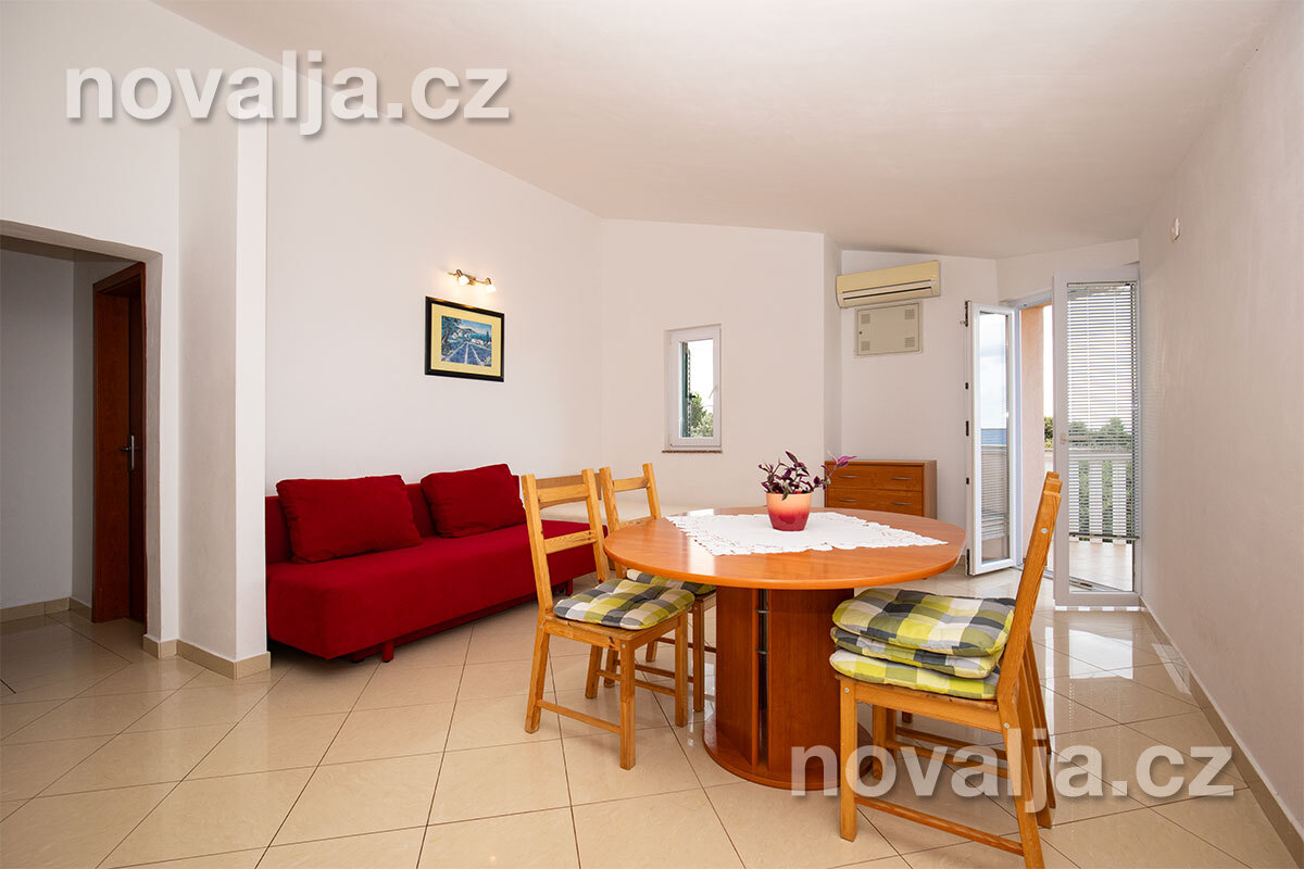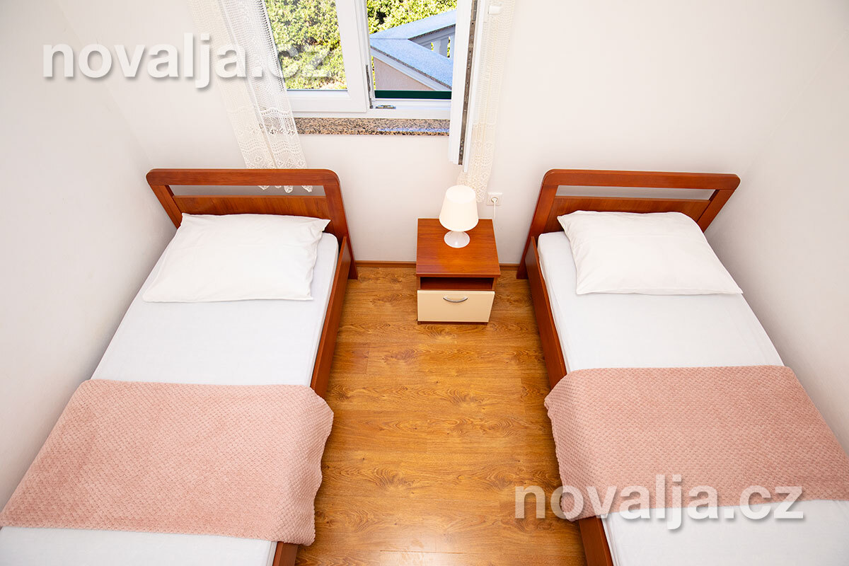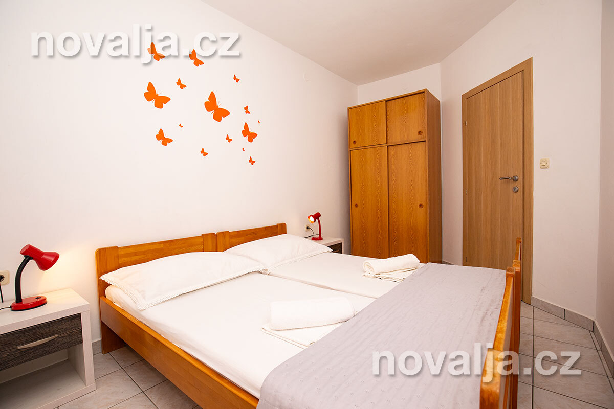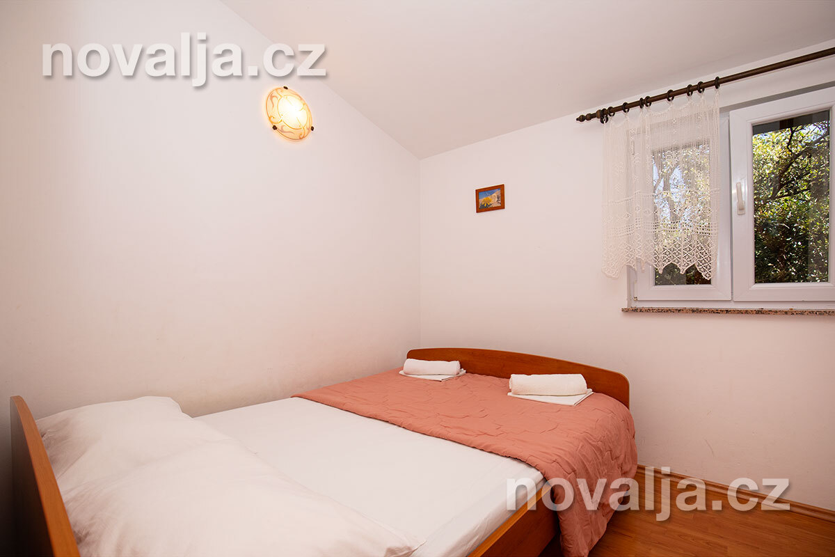 2 ložnice se dvěma lůžky, vybavená kuchyň (lednička, mrazák, trouba, varná konvice) s rozkládacím gaučem (190 x 125 cm) pro 1–2 osoby (buď 2 děti do 12 let, nebo jen 1 osoba starší 12 let), sociální zařízení se sprchovým koutem a WC, 2x terasa s výhledem na moře (1x s markýzou). Klimatizace v kuchyni (v ceně).
