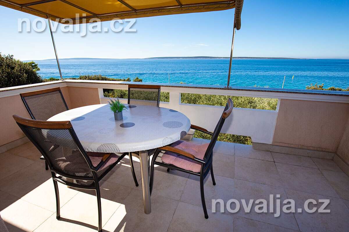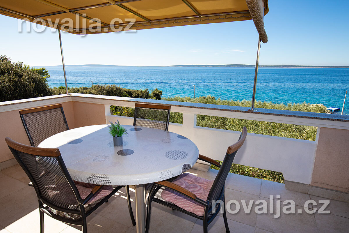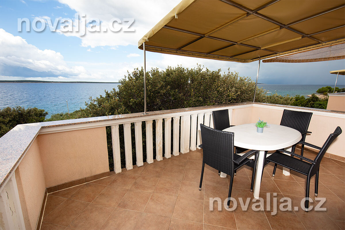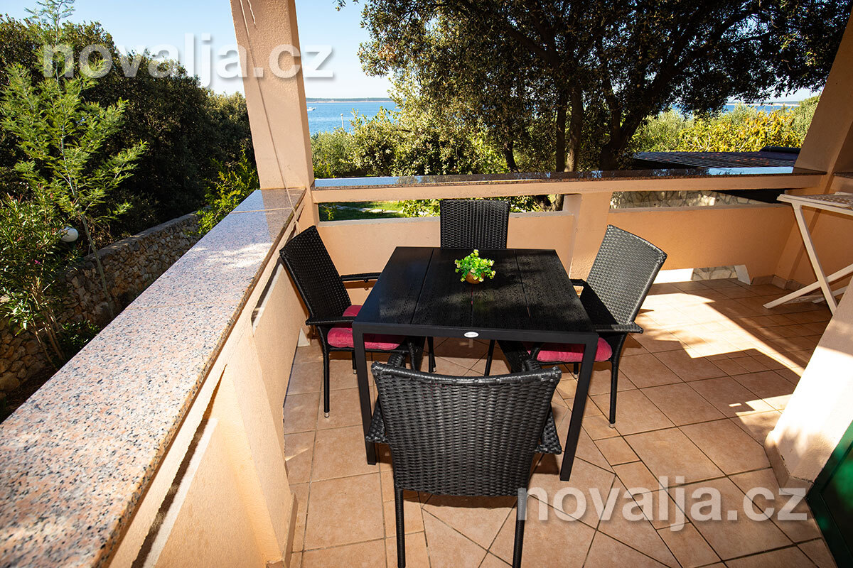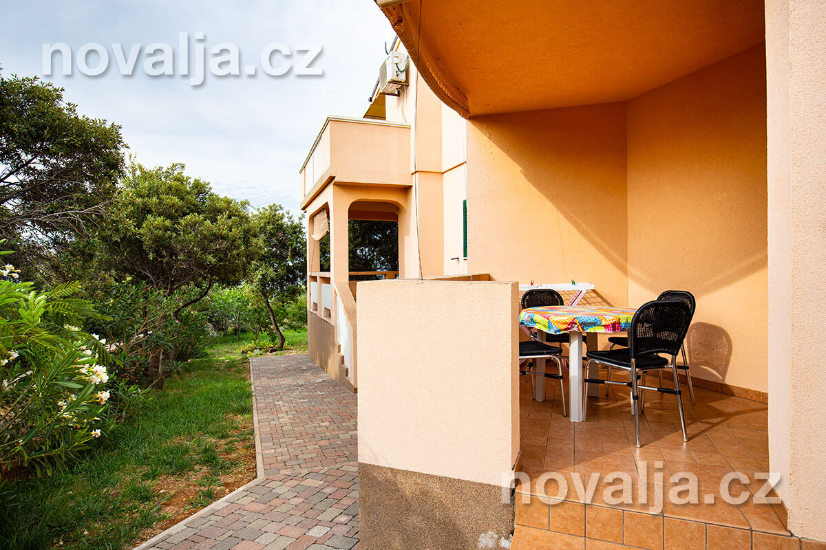 2 ložnice se dvěma lůžky, vybavená kuchyň (lednička, mrazák, trouba, varná konvice) s rozkládacím gaučem (190 x 125 cm) pro 1–2 osoby (buď 2 děti do 12 let, nebo jen 1 osoba starší 12 let), sociální zařízení se sprchovým koutem a WC, 2x terasa s výhledem na moře (1x s markýzou). Klimatizace v kuchyni (v ceně).