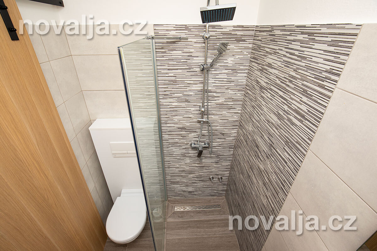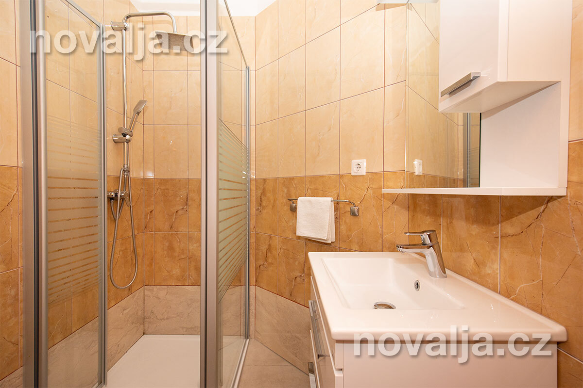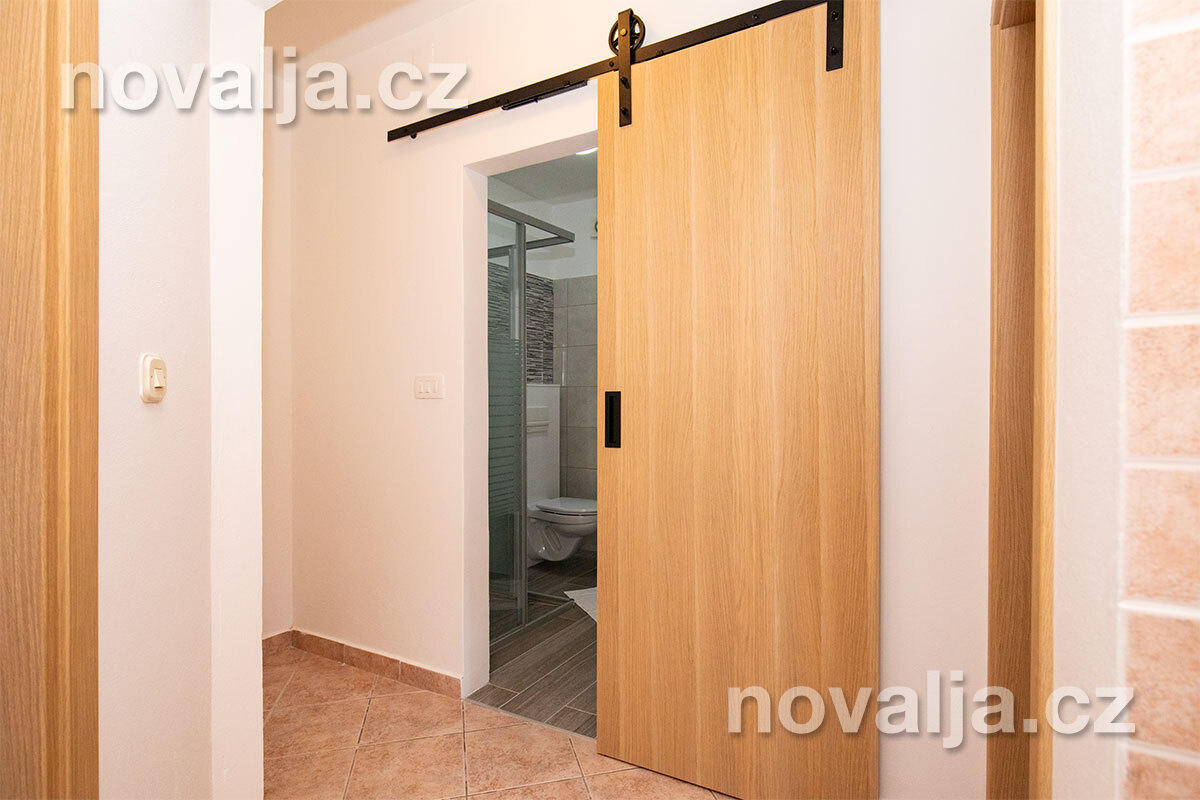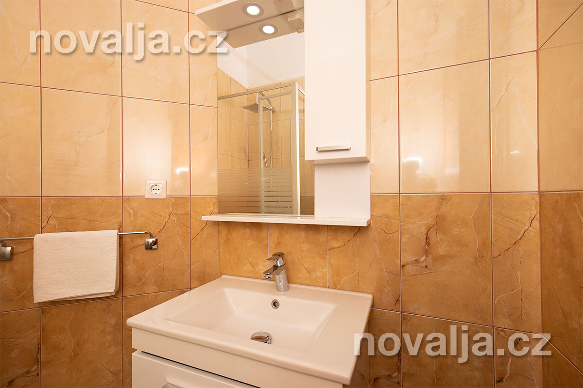 2 ložnice se dvěma lůžky, možnost přistýlky pro 1 osobu (rozkládací lůžko), vybavená kuchyň (lednička, mrazák, trouba, varná konvice), sociální zařízení se sprchovým koutem a WC, terasa. Klimatizace v kuchyni (v ceně).