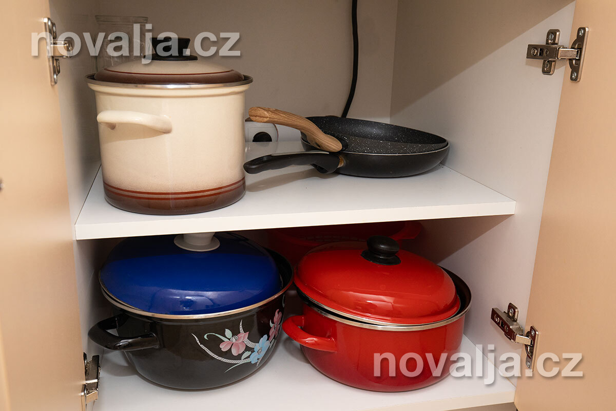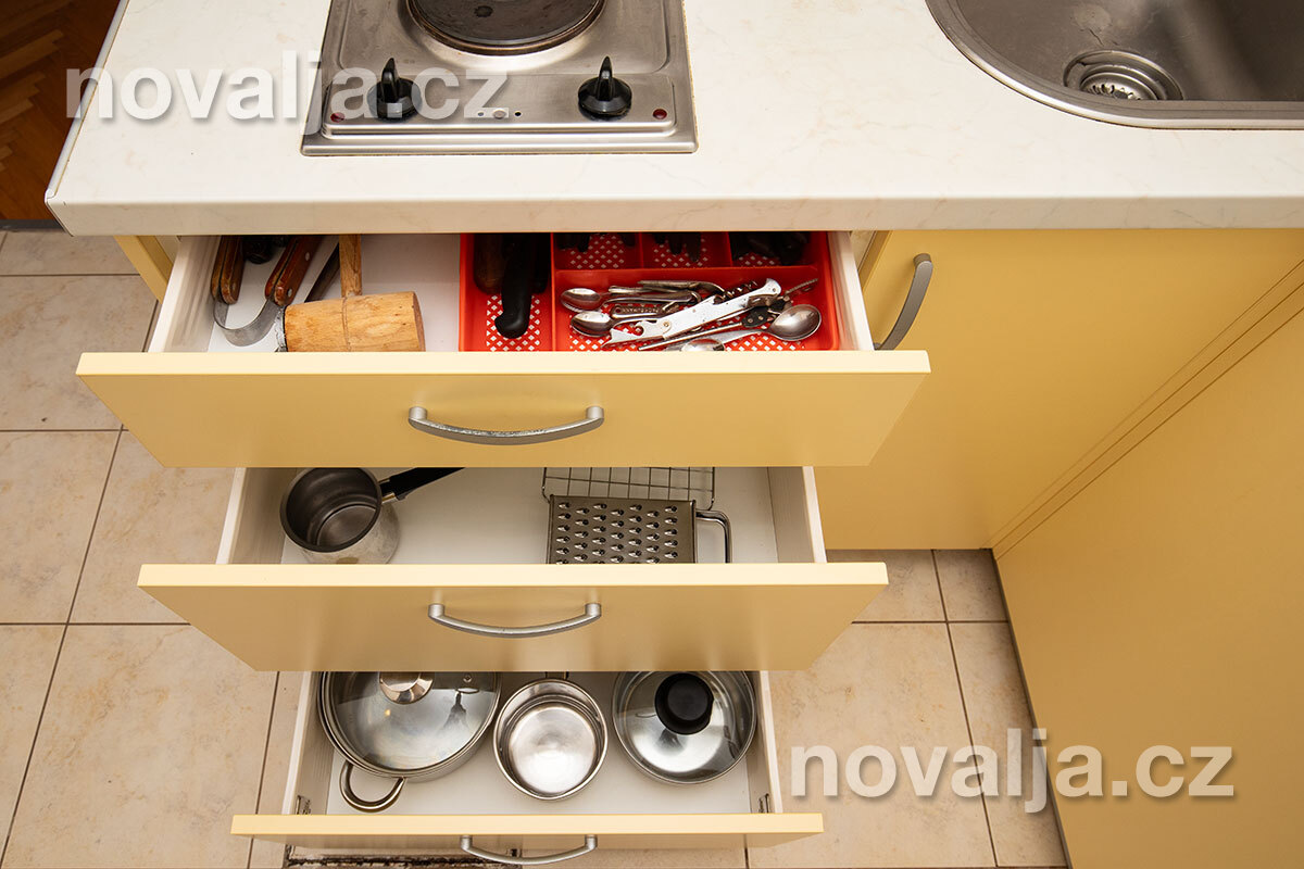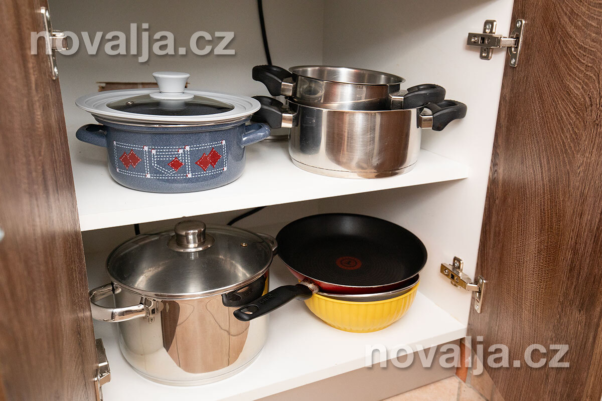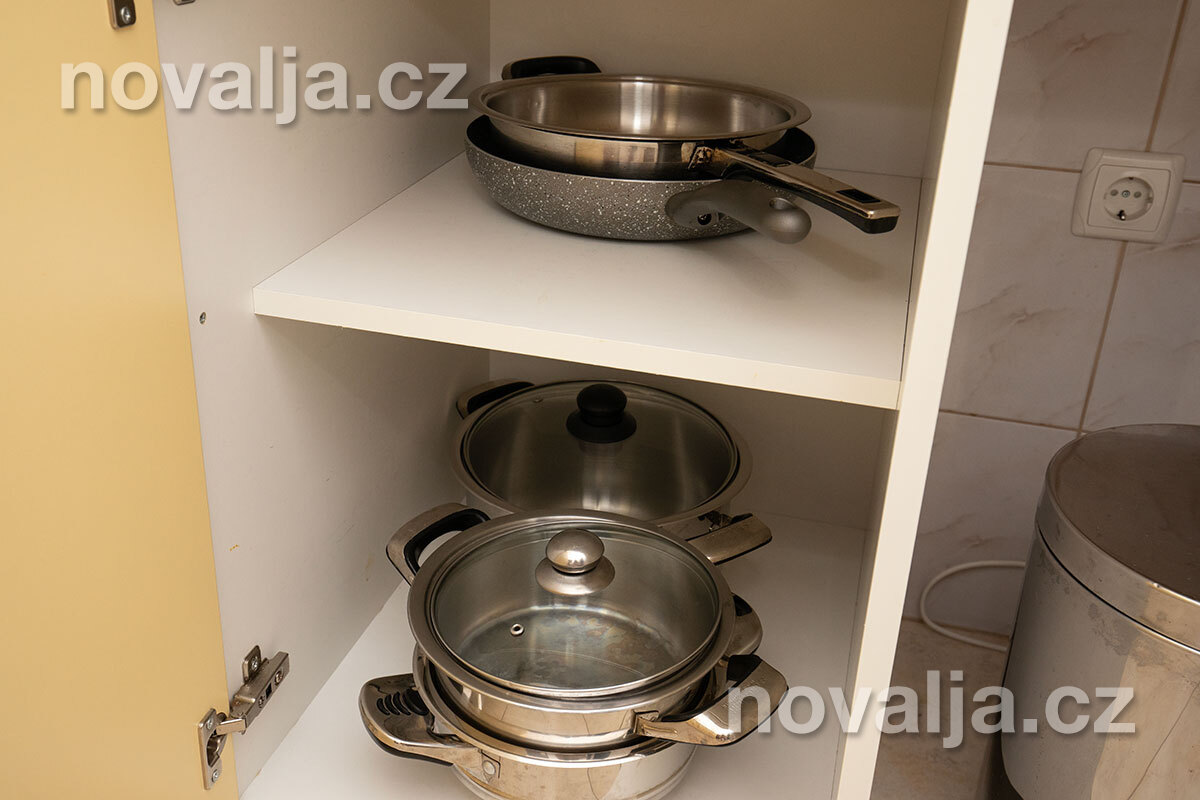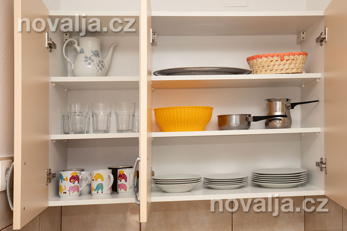 1 ložnice se třemi lůžky, vybavená kuchyň (lednička, mrazák, varná konvice) s rozkládacím gaučem (200 x 160 cm) pro 1–2 osoby, sociální zařízení se sprchovým koutem a WC, stíněná terasa. Klimatizace v ložnici (v ceně).