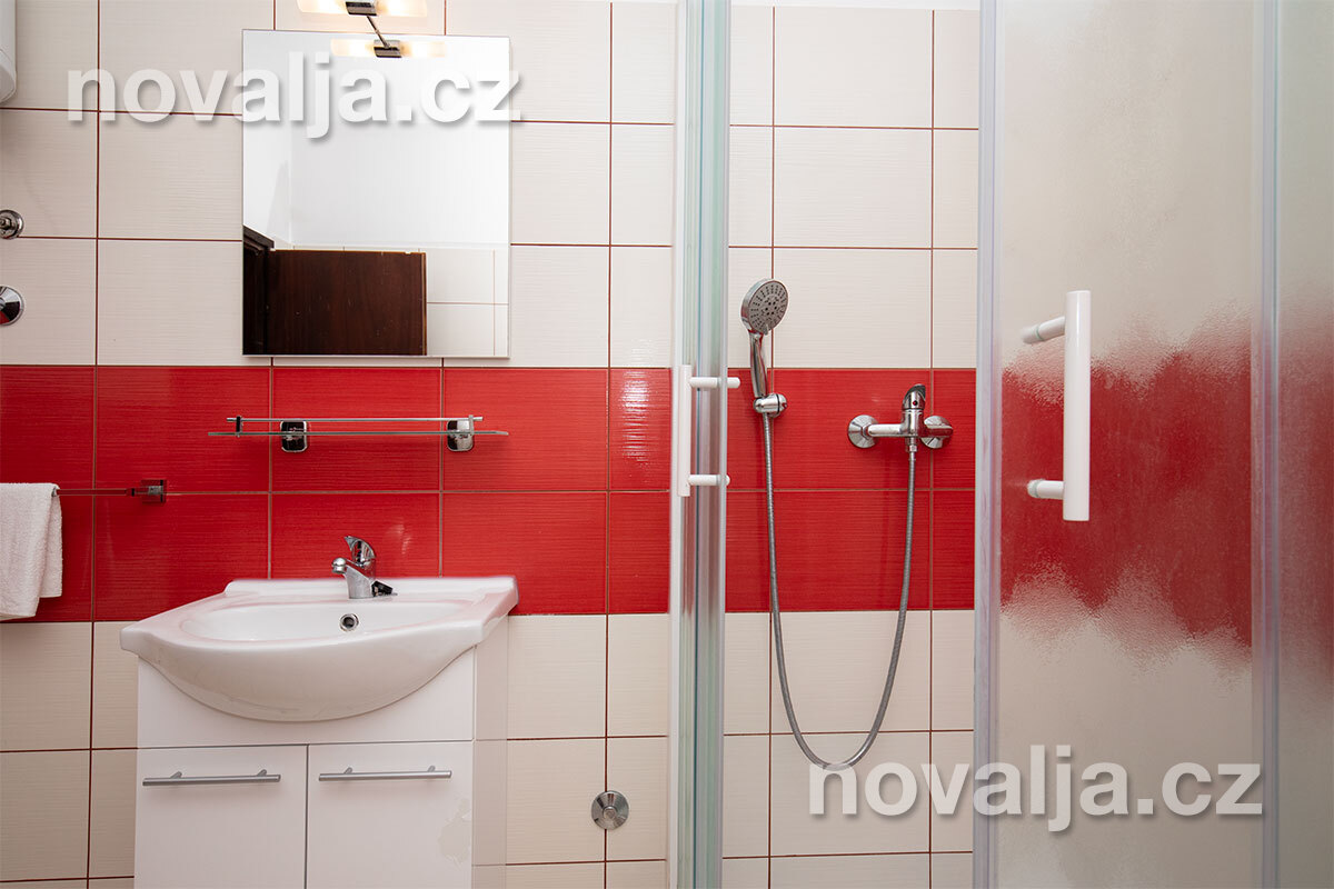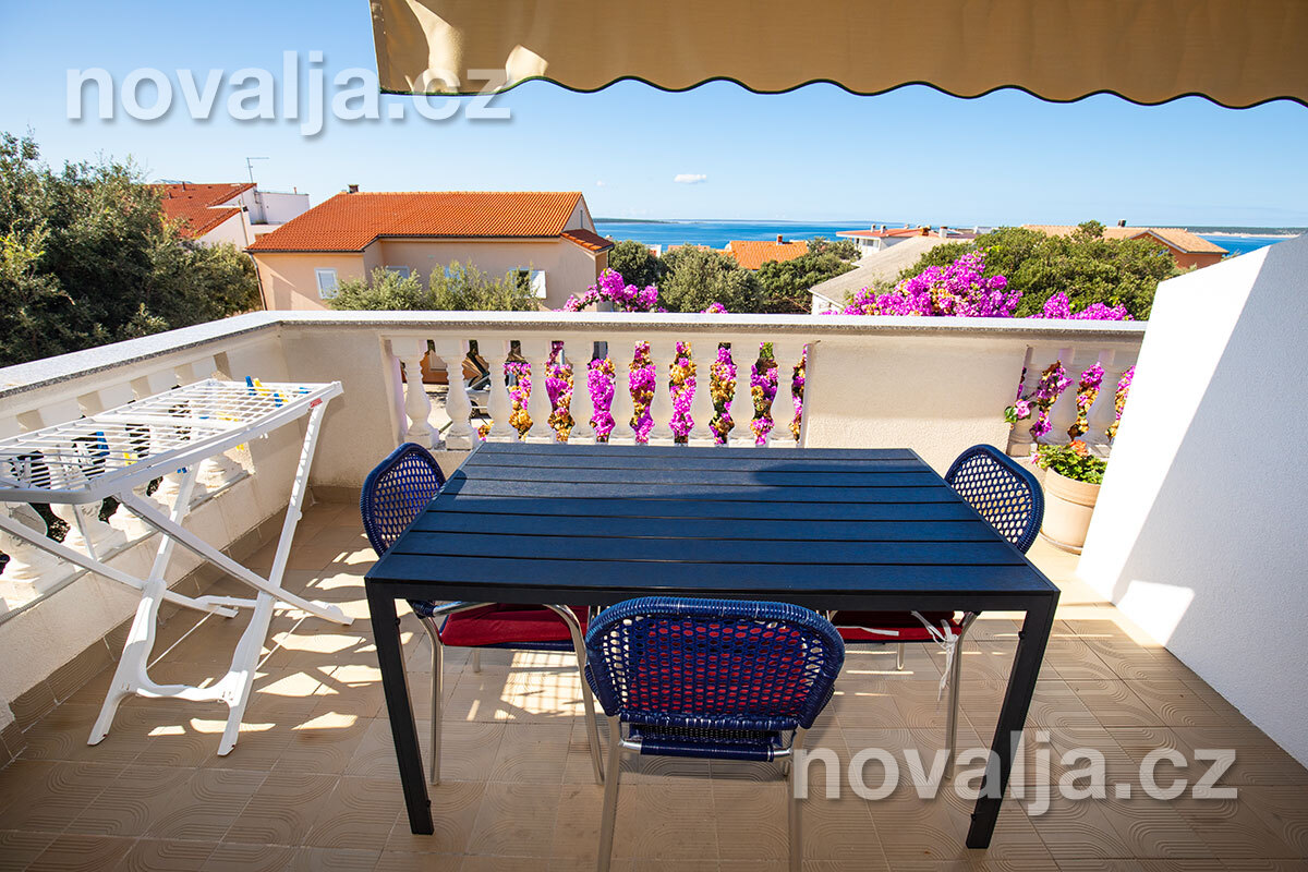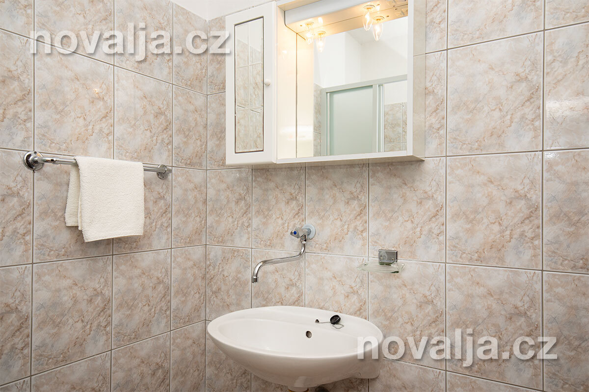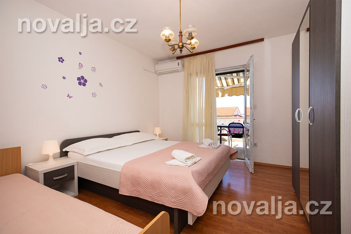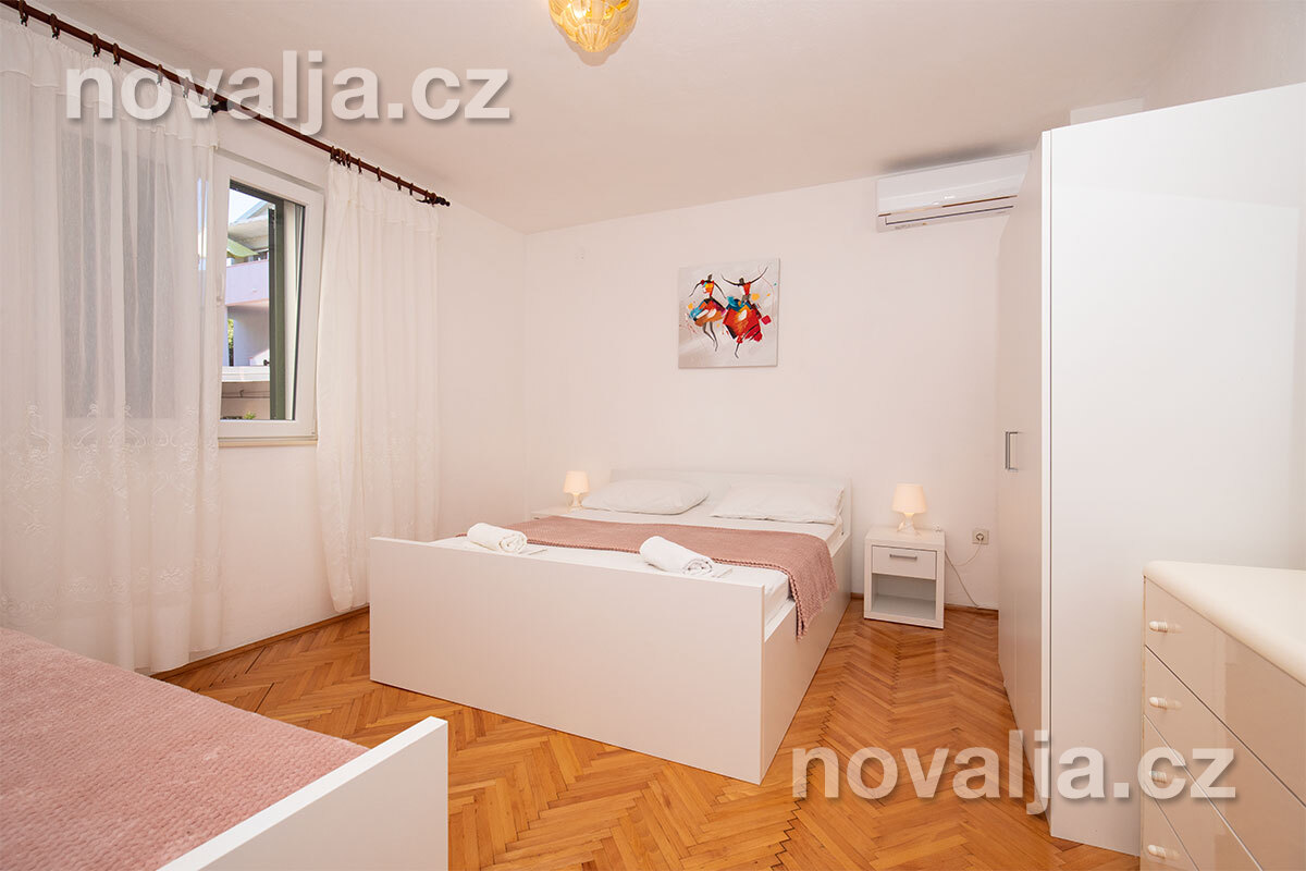 1 ložnice se třemi lůžky, vybavená kuchyň (lednička, varná konvice, myčka, mikrovlnná trouba) - v kuchyni není okno, sociální zařízení se sprchovým koutem a WC, velká terasa s výhledem na moře. Klimatizace v ložnici (v ceně).
