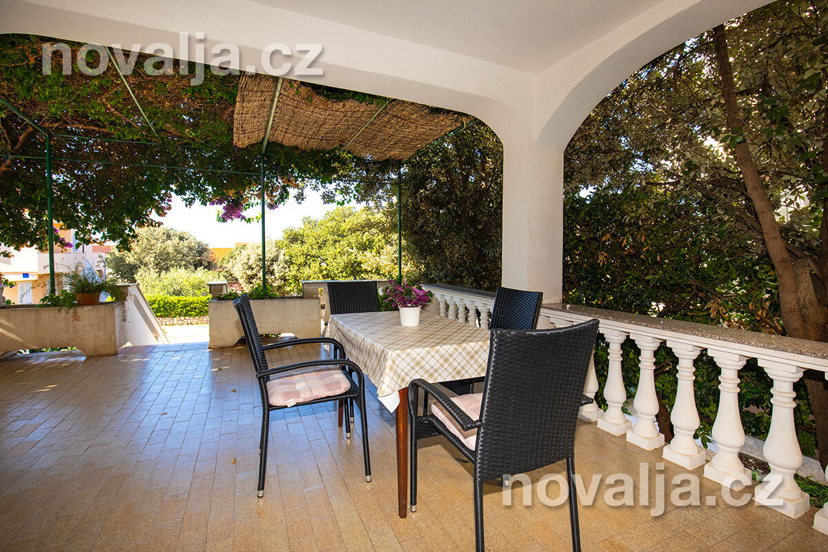 1 ložnice se třemi lůžky, vybavená kuchyň (lednička, mrazák, varná konvice), sociální zařízení se sprchovým koutem a WC, terasa s částečným výhledem na moře. Klimatizace (v ceně).