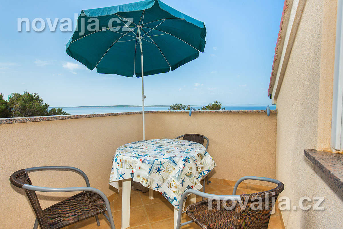 1 ložnice se dvěma lůžky, vybavená kuchyň (lednička, varná konvice) s rozkládacím gaučem (187 x 106 cm) pro 1 dítě do 12 let, sociální zařízení se sprchovým koutem a WC, balkón s výhledem na moře, slunečník. Klimatizace v kuchyni 8 hodin/den v ceně, dále za příplatek 0,50 €/1 hod. (hradí se na místě).