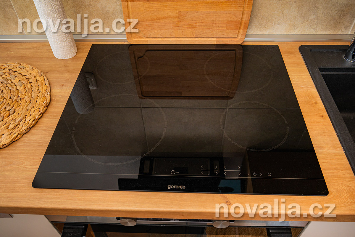 1 ložnice se dvěma lůžky, vybavená kuchyň (lednička, myčka + tablety do myčky, kávovar, mikrovlnná trouba, varná konvice) s rozkládacím gaučem (180 x 200 cm) pro 1-2 osoby (buď 2 děti do 12 let, nebo jen 1 osoba starší 12 let), TV+SAT, sociální zařízení se sprchovým koutem a WC, terasa. Klimatizace (v ceně).