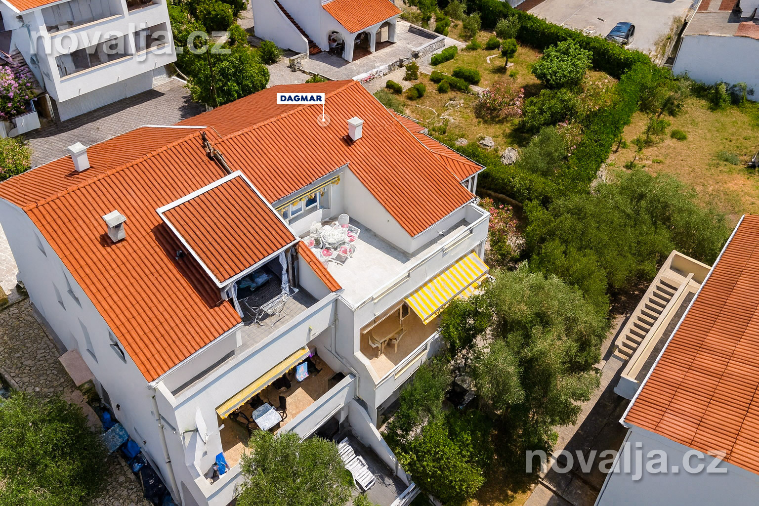 Apartmány Dagmar se nacházejí 600 m od centra Novalji. Obchod a restaurace jsou do 200 m od domu. Nejbližší pláž je vzdálená 850 m – jedná se o písčitooblázkovou pláž u hotelu Liberty. Autem je dostupná písečná pláž Planjka ve Staré Novalji (4,1 km), nebo pláž Babe na severozápadním konci Novalji (5,1 km).