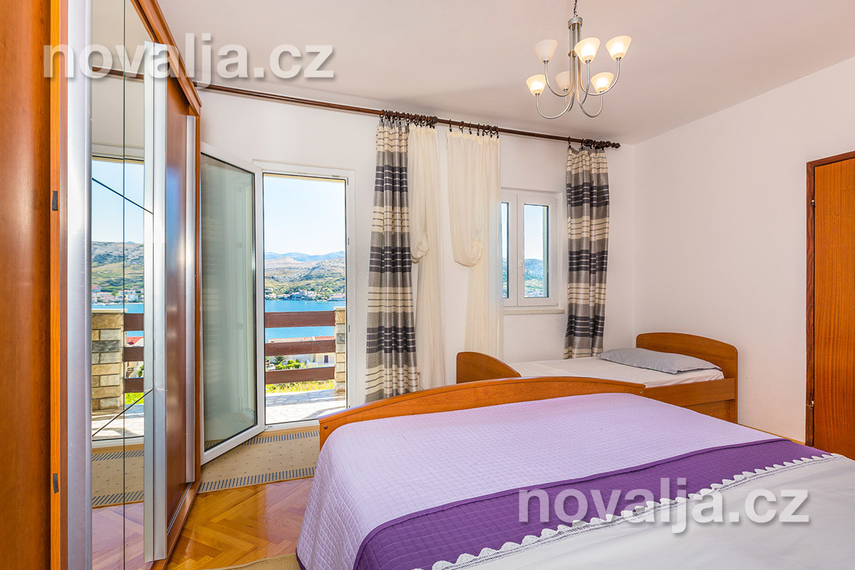 1 ložnice se dvěma lůžky, vybavená kuchyň (lednička, mrazák, mikrovlnná trouba, varná konvice, kávovar, toaster) s rozkládacím gaučem pro 2 osoby, TV+SAT, sociální zařízení se sprchovým koutem a WC, terasa s výhledem na moře. Klimatizace v jedné ložnici v ceně.