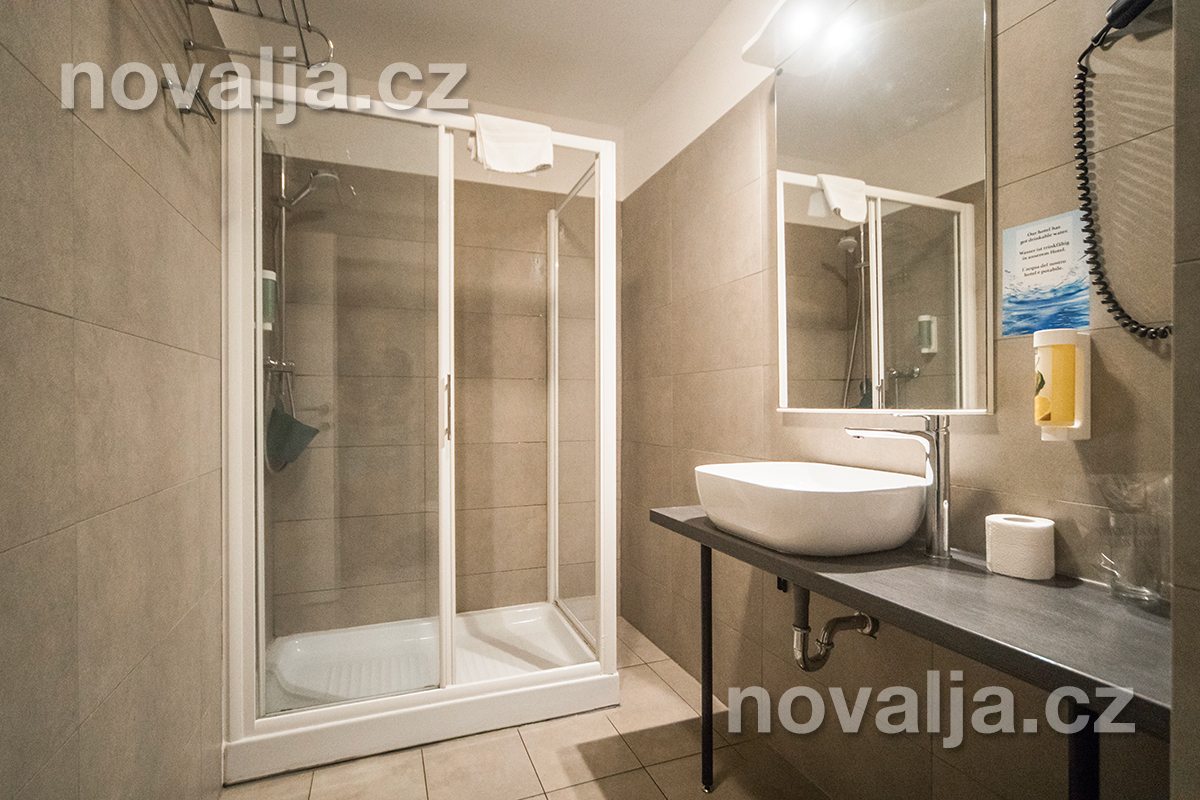 2 lůžka (manželské lůžko, nebo dvě oddělená lůžka), TV+SAT, telefon, minibar, trezor, sociální zařízení se sprchovým koutem a WC, fén, francouzské okno, klimatizace (v ceně).