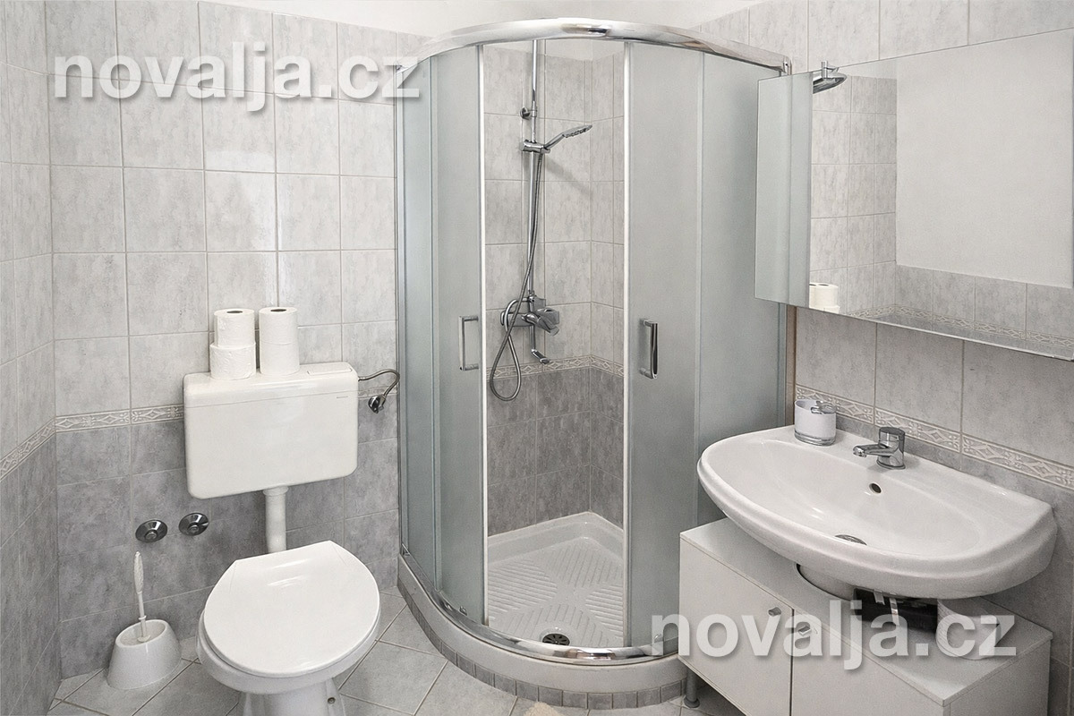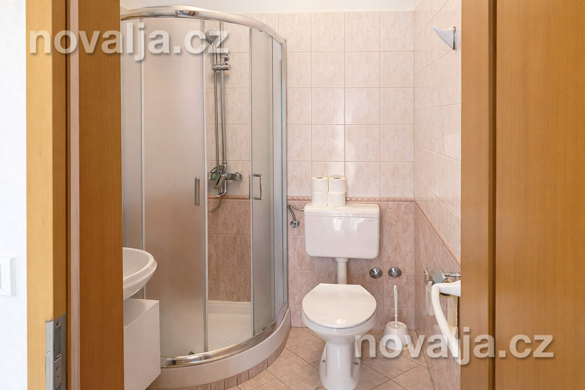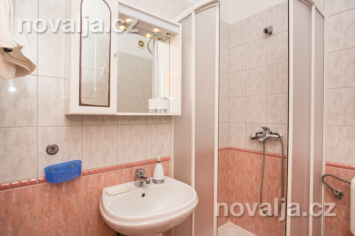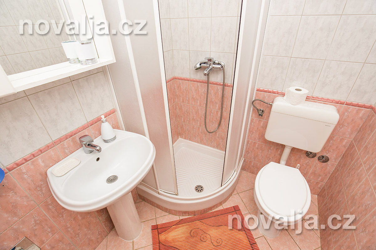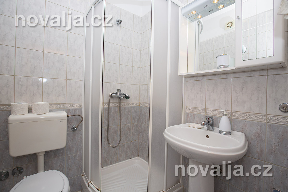 2 ložnice se dvěma lůžky (v jedné ložnici postel 200 x 160 cm, v druhé ložnici francouzská postel 200 x 140 cm), vybavená kuchyň (indukční varná deska, lednička, mrazák, myčka, trouba, mikrovlnná trouba, varná konvice, kávovar, toaster), sociální zařízení se sprchovým koutem a WC, fén, TV+SAT, terasa s částečným výhledem na moře. Klimatizace v kuchyni (v ceně).