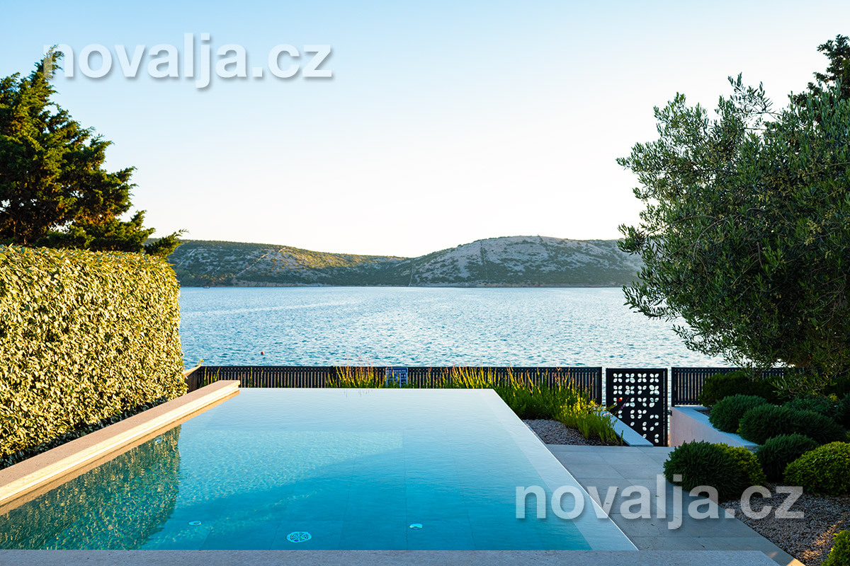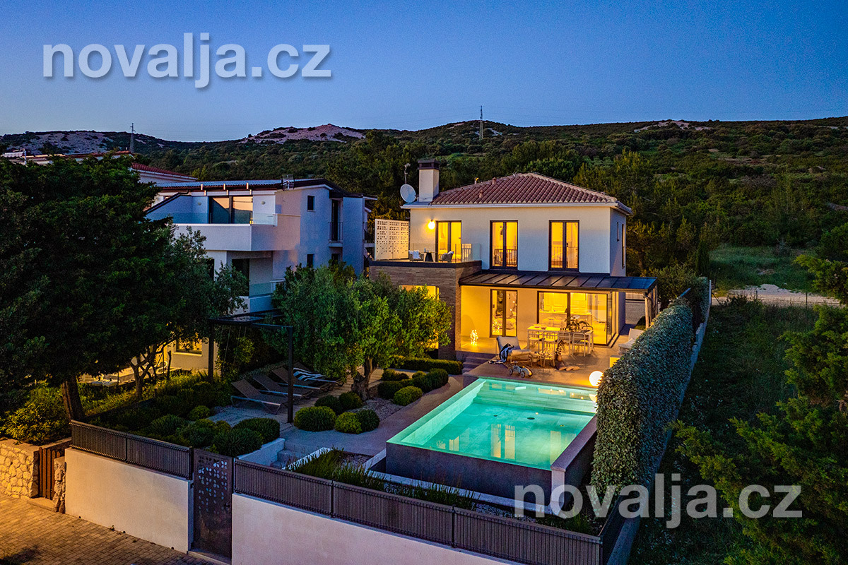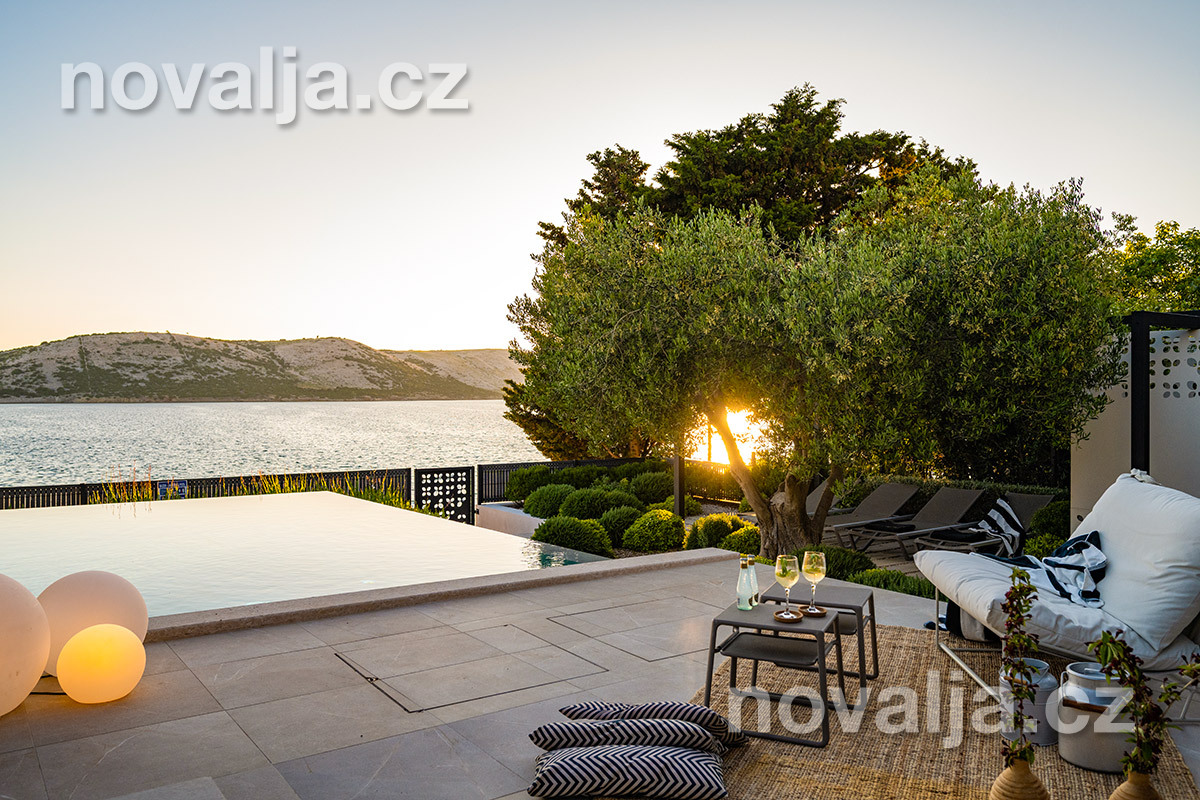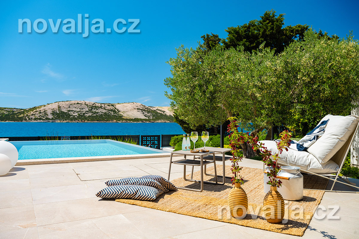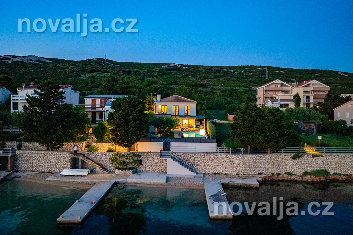 Elegantní vila se soukromým vyhřívaným bazénem hned u pláže, bez dalších hostů, bez majitelů - to je prázdninový dům Lunjsko v letovisku Stara Novalja. Dům má 3 ložnice a ubytuje 6 osob plus případně 1–2 děti. Hned u domu je menší písčitooblázková pláž a betonové molo. Můžete zde také kotvit člun. Písečná pláž Planjka je od domu vzdálená 1,3 km.