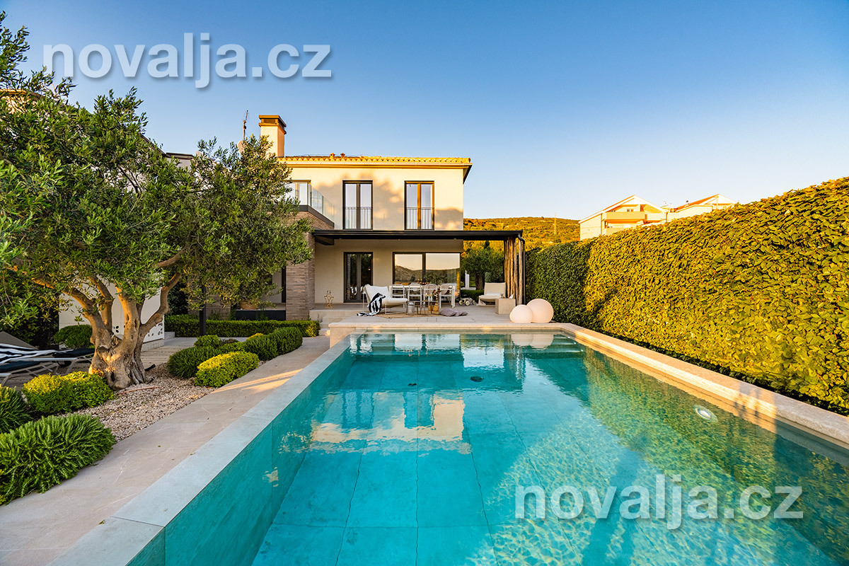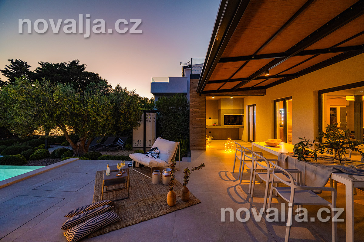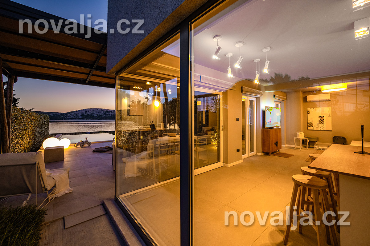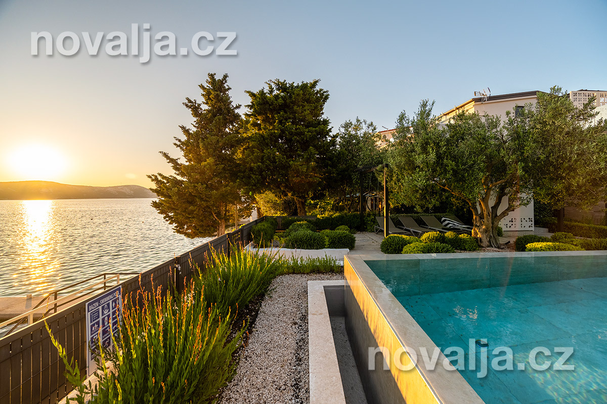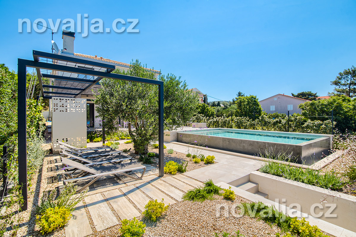 Elegantní vila se soukromým vyhřívaným bazénem hned u pláže, bez dalších hostů, bez majitelů - to je prázdninový dům Lunjsko v letovisku Stara Novalja. Dům má 3 ložnice a ubytuje 6 osob plus případně 1–2 děti. Hned u domu je menší písčitooblázková pláž a betonové molo. Můžete zde také kotvit člun. Písečná pláž Planjka je od domu vzdálená 1,3 km.