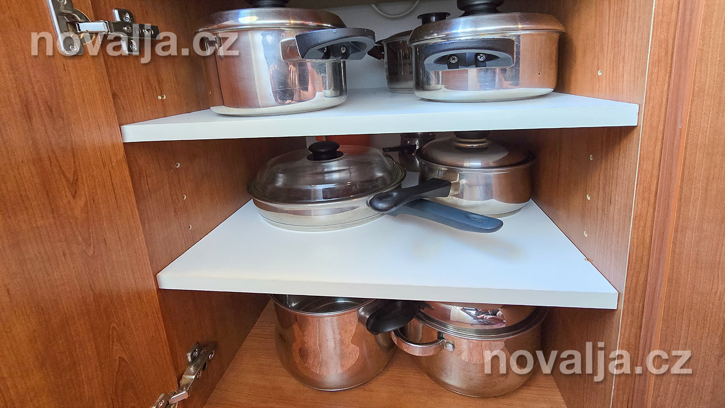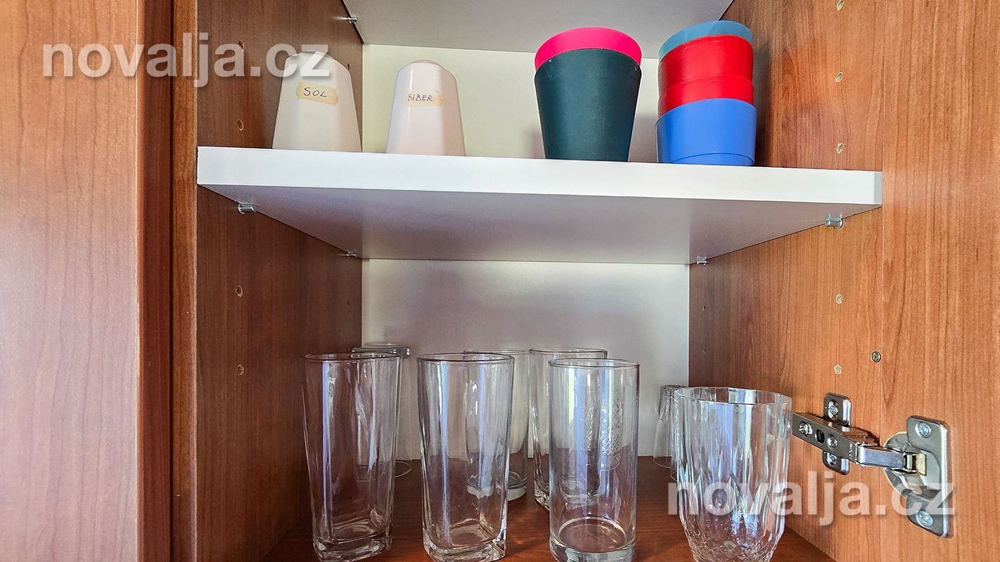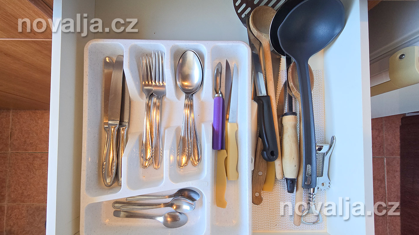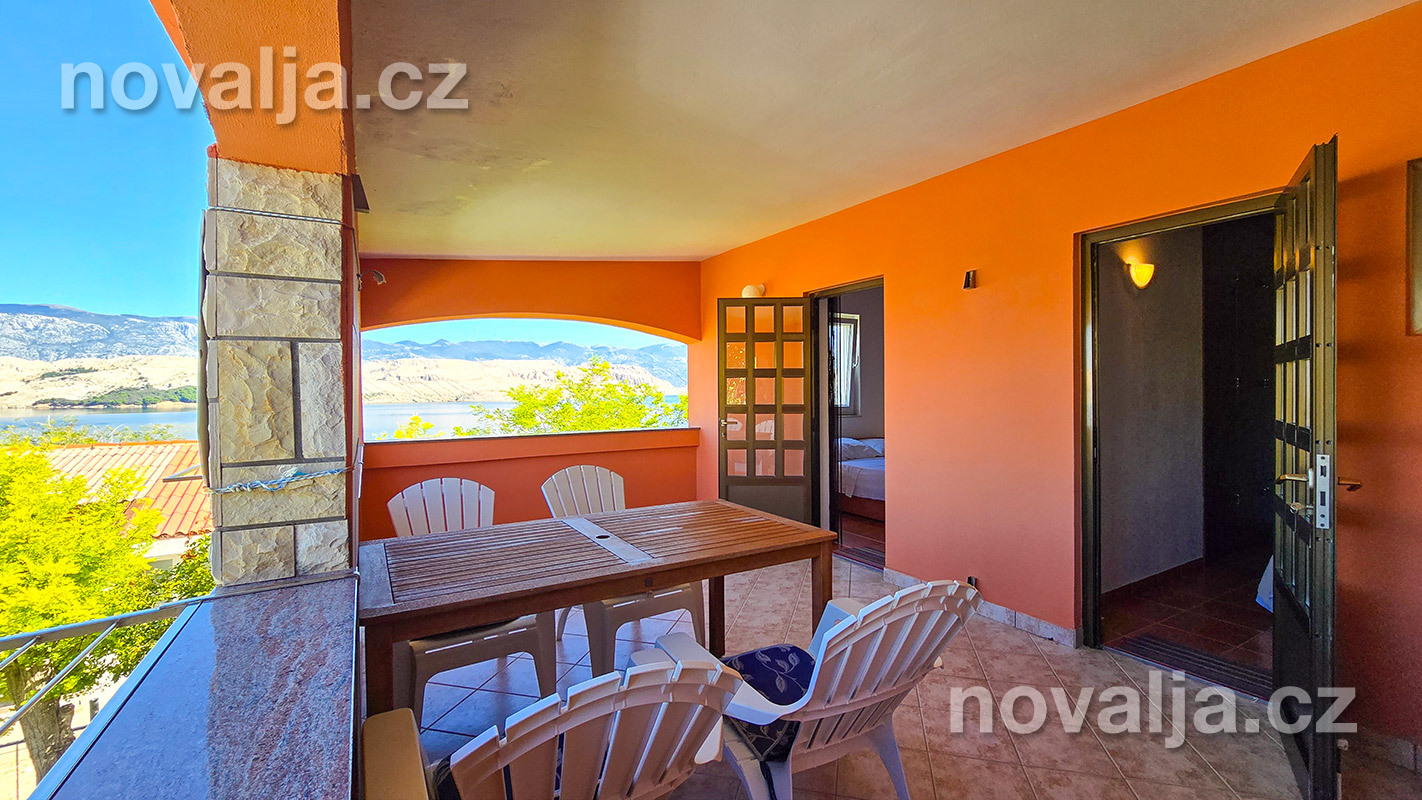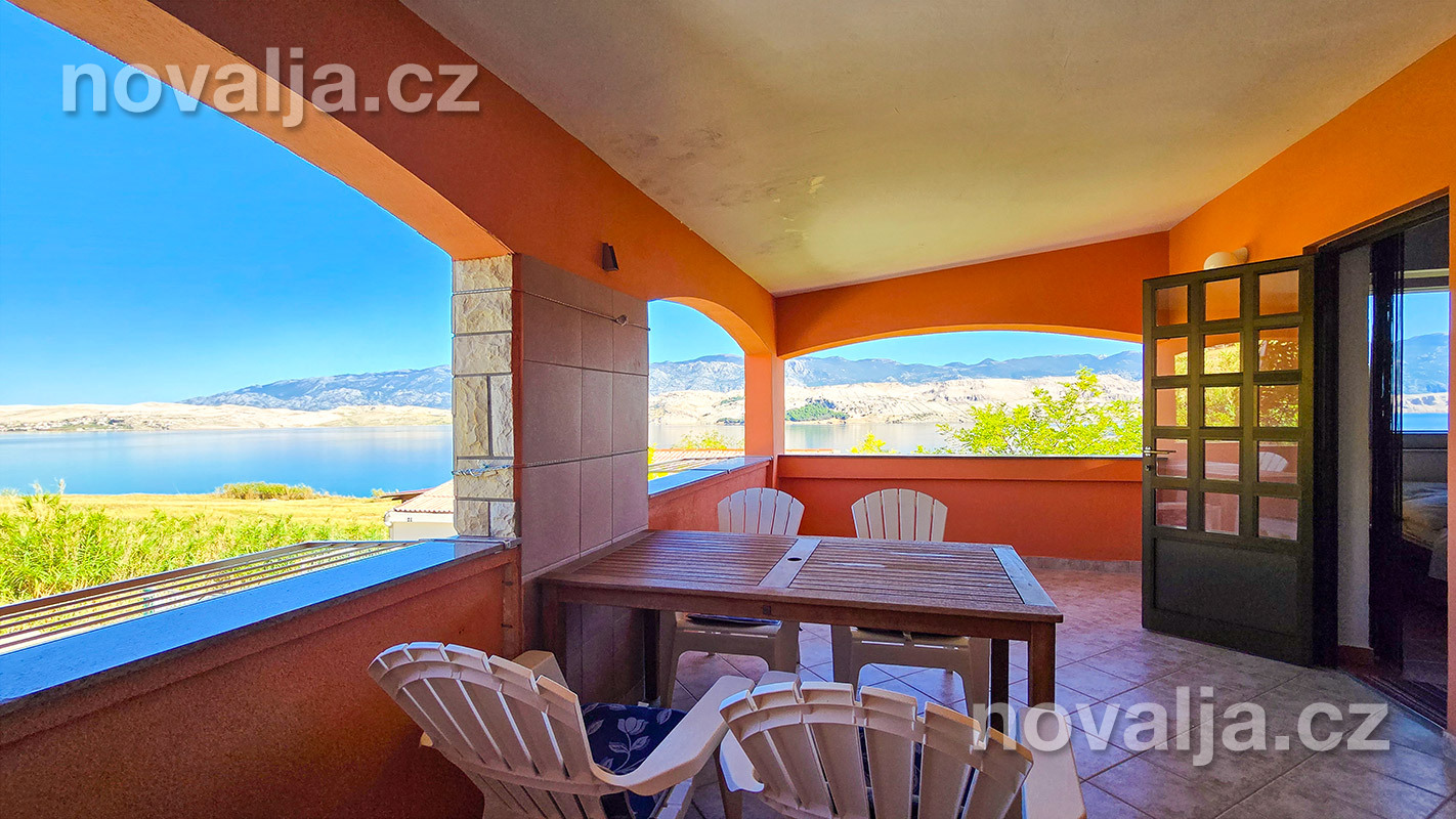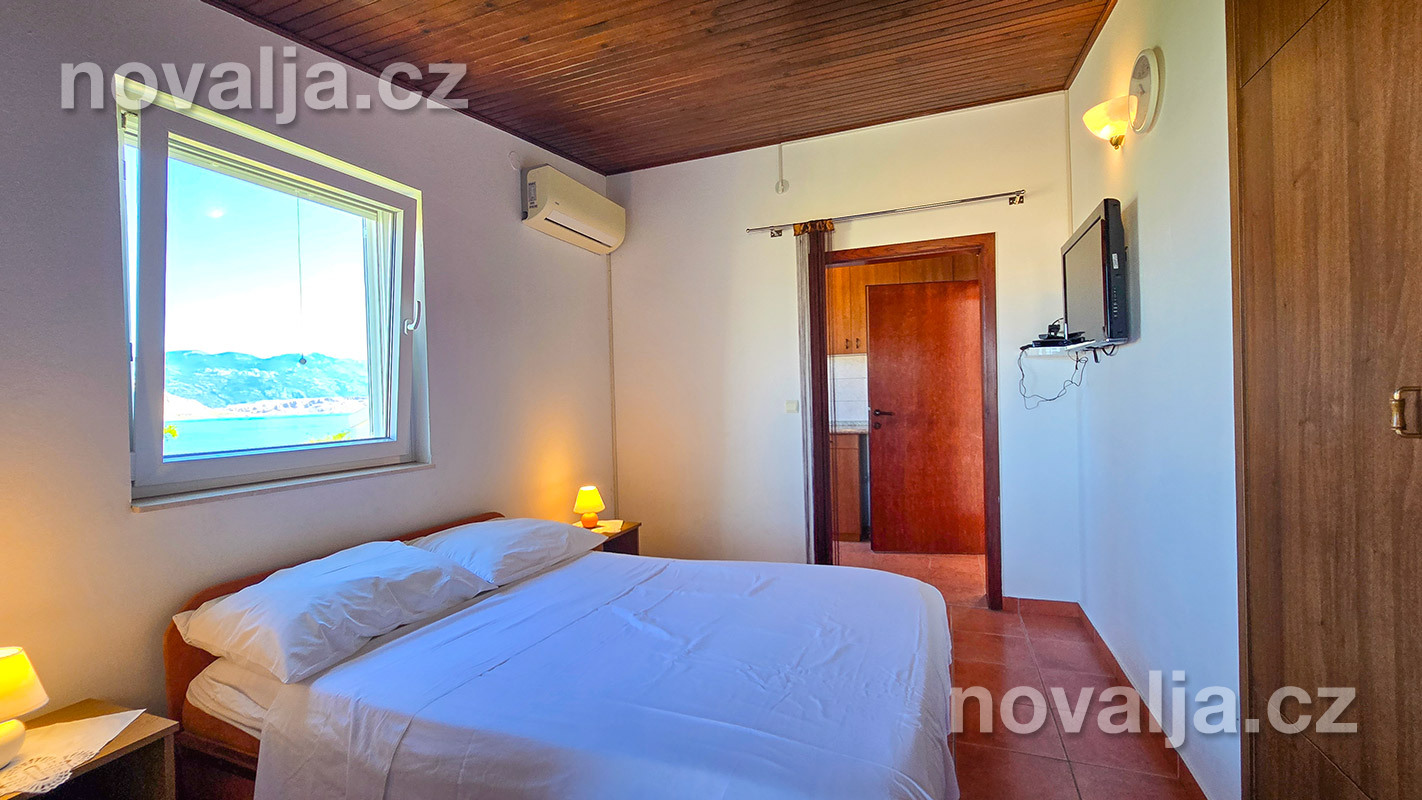 Dva apartmány se společnou chodbou a terasou pro 4 osoby (celkem): 2 ložnice se dvěma lůžky, 2 vybavené kuchyně, 2 koupelny se sprchovým koutem a WC, prostorná krytá terasa s výhledem na moře. Klimatizace v obou ložnicích za příplatek 14 €/den (hradí se na místě).