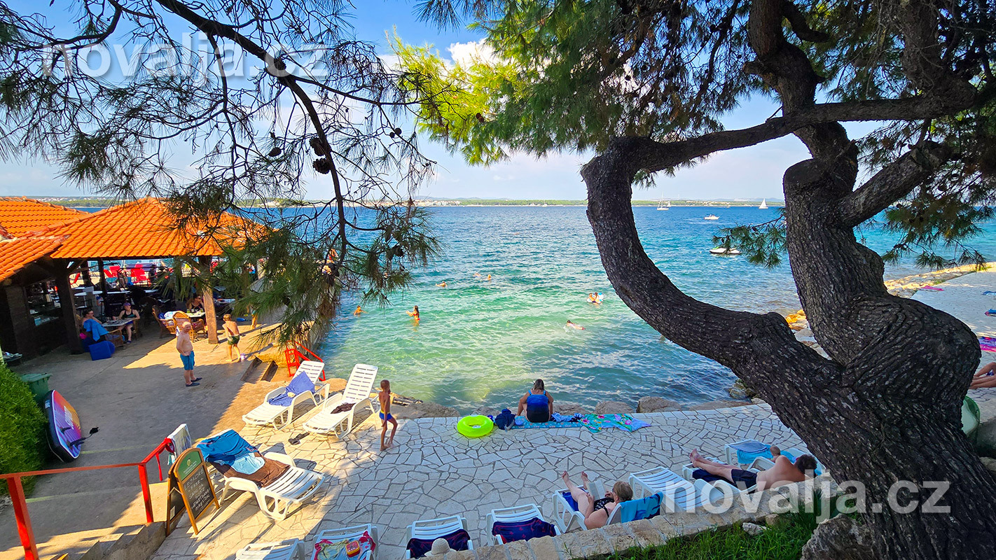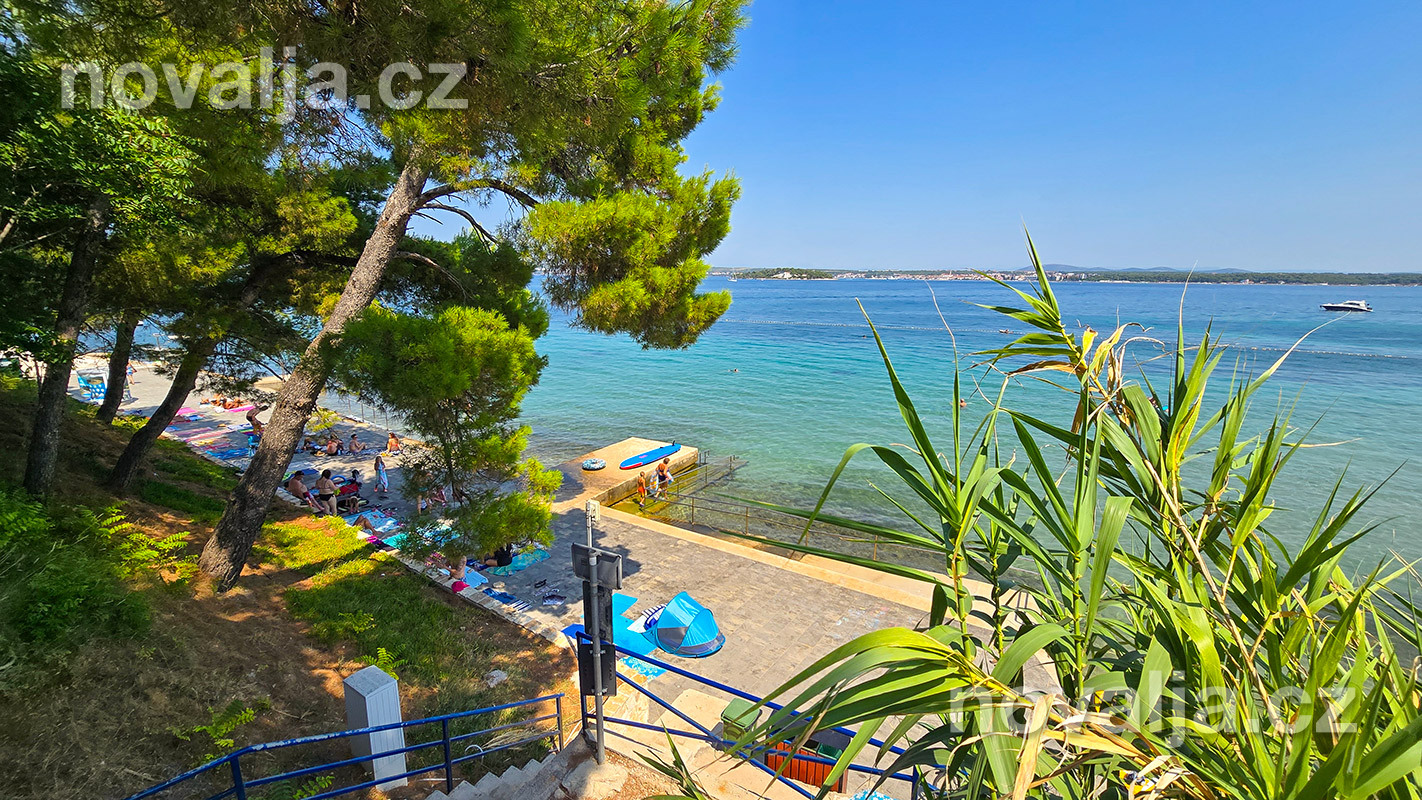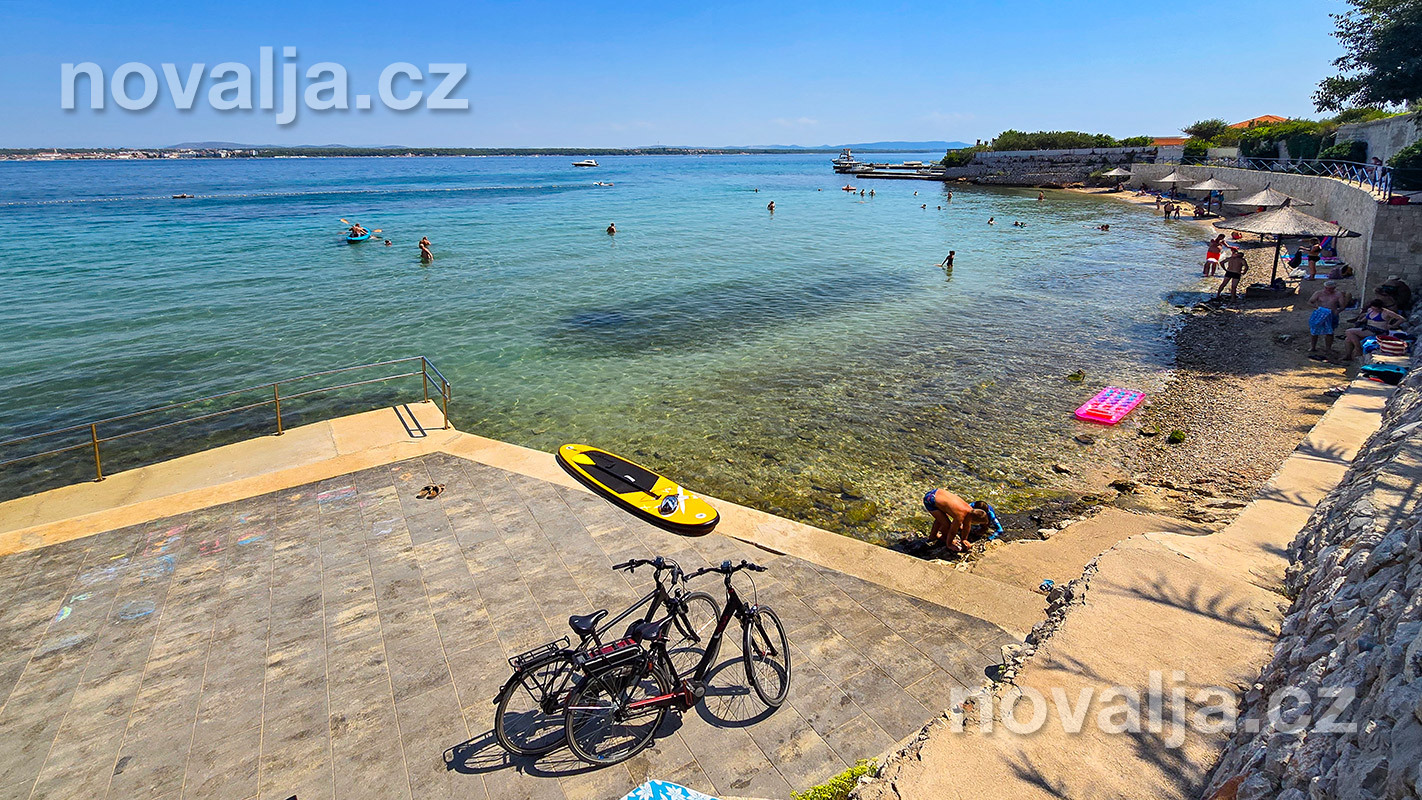 Dům Kornelija s jedním perfektně vybaveným apartmánem pro 6–8 osob se nachází v jihovýchodní části městečka Tkon. Písečná pláž Južna plaža s pozvolným vstupem do moře je 250 m od domu (přístup na pláž z jedné strany po schodech, z druhé strany sjízdný). Plážový bar Ga-Ga je 250 m od domu (směrem do centra), restaurace je vzdálená 270 m, obchod 300 m.