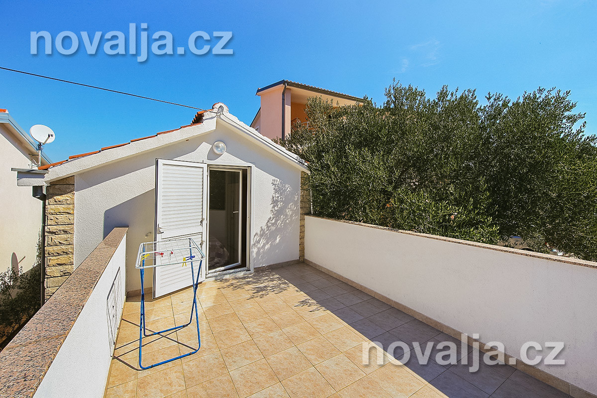 2 ložnice se dvěma lůžky, vybavená kuchyň (lednička, mrazák, trouba, myčka, kávovar, varná konvice), TV+SAT, sociální zařízení se sprchovým koutem a WC, fén, prostorná terasa s částečným výhledem na moře (přes zeleň). Klimatizace v kuchyni (v ceně).