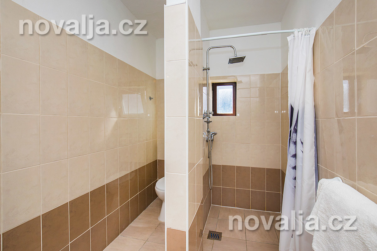 2 ložnice se dvěma lůžky, vybavená kuchyň (lednička, mrazák, trouba), TV, sociální zařízení se sprchovým koutem a WC (vstup do koupelny vede přes jednu z ložnic), fén, terasa s výhledem na moře. Klimatizace v kuchyni (v ceně).