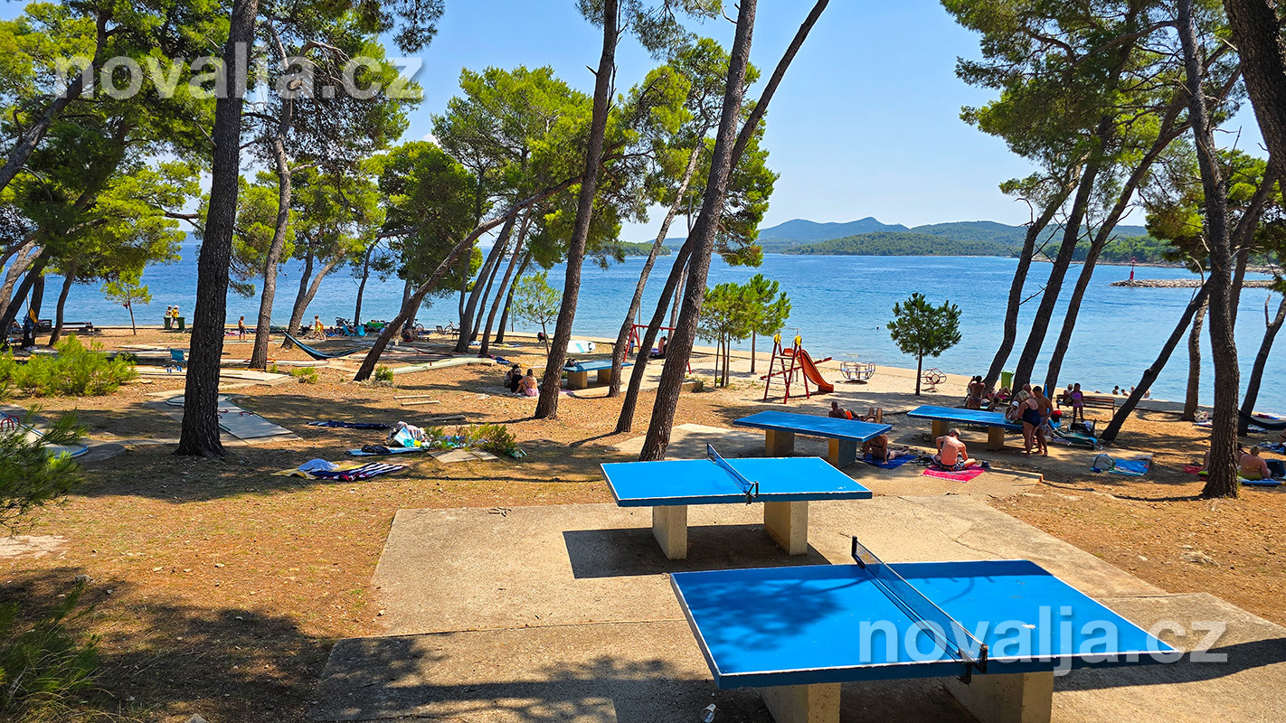 Všech 86 apartmánů Resortu Zelena Punta se nachází v borovém lese v letovisku Kukljica, ve vzdálenosti 40–200 metrů od pláže (záleží na tom, v jaké části jste ubytovaní). Pláž je zde členitá s oblázky, betonovými platy nebo skalami. Většina apartmánů má alespoň částečný výhled na moře.