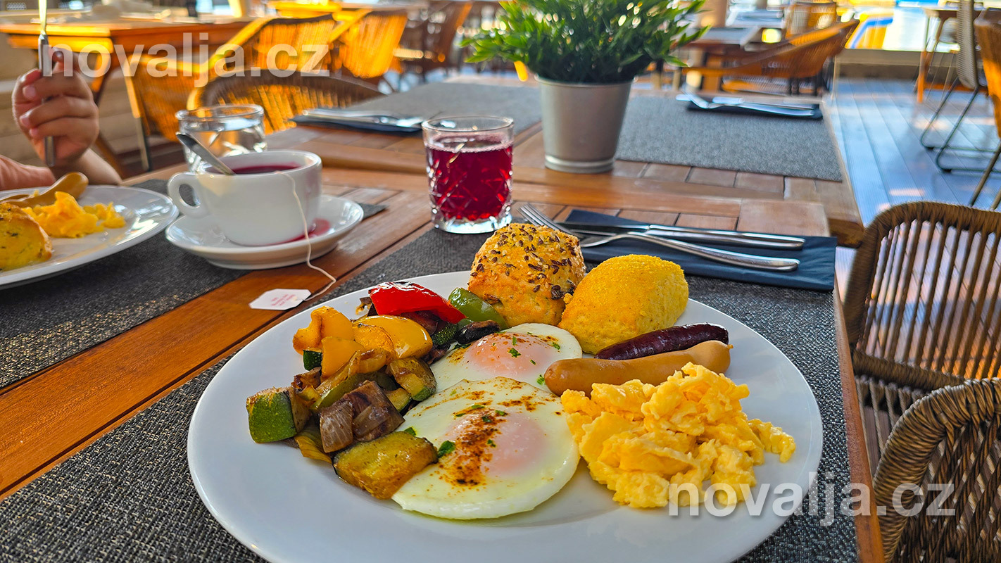 Snídaně i večeře jsou k dispozici v baru Skakaona u pláže.